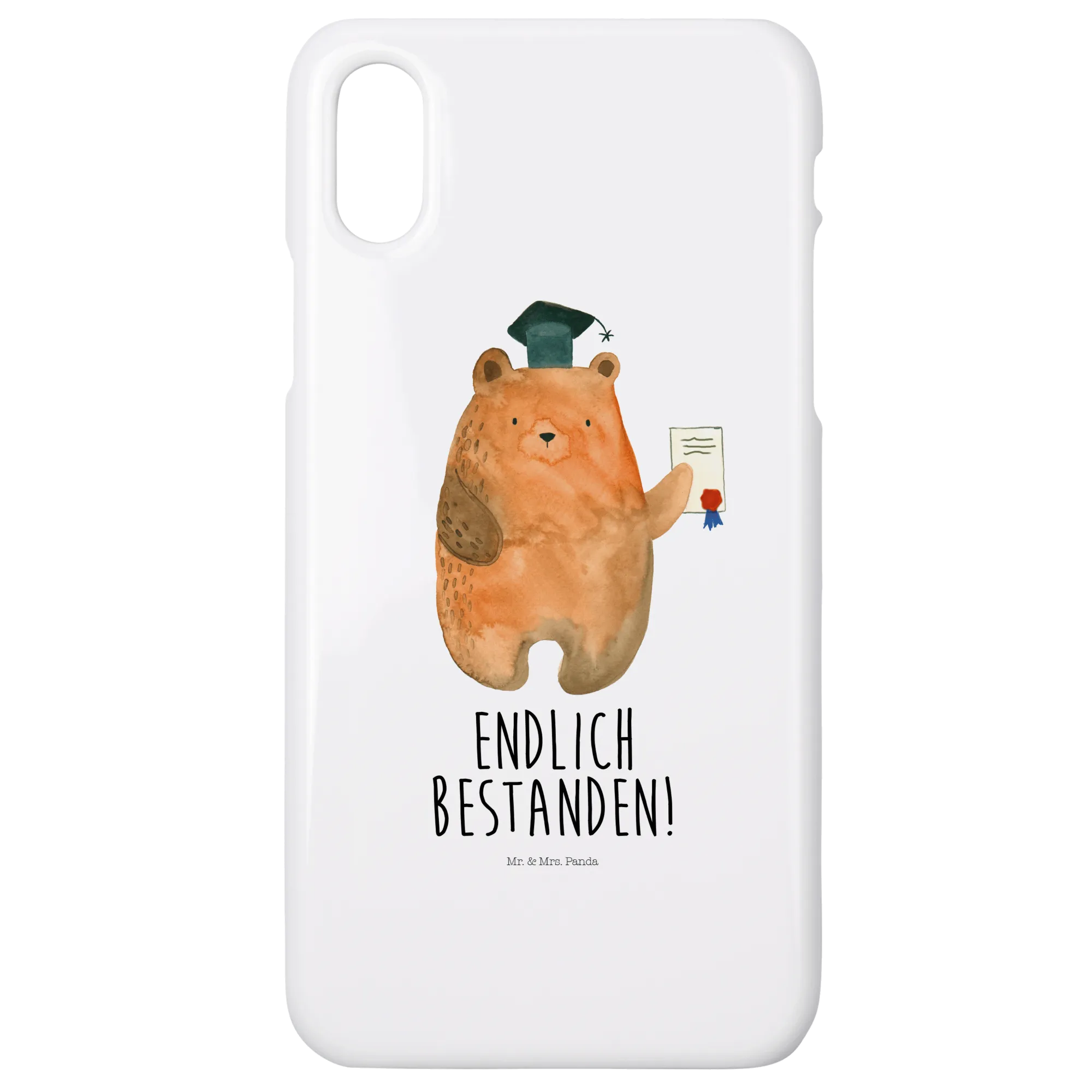 Die iPhone XR Handyhülle Prüfungsbär von Mr. & Mrs. Panda ist das perfekte Geschenk für alle, die gerade ihre Prüfungen bestanden haben! Mit dem liebevollen Motiv des Prüfungsbären und dem tollen Slogan "Endlich bestanden!" bringt diese Schutzhülle Freude und Erinnerungen an einen wichtigen Lebensabschnitt.