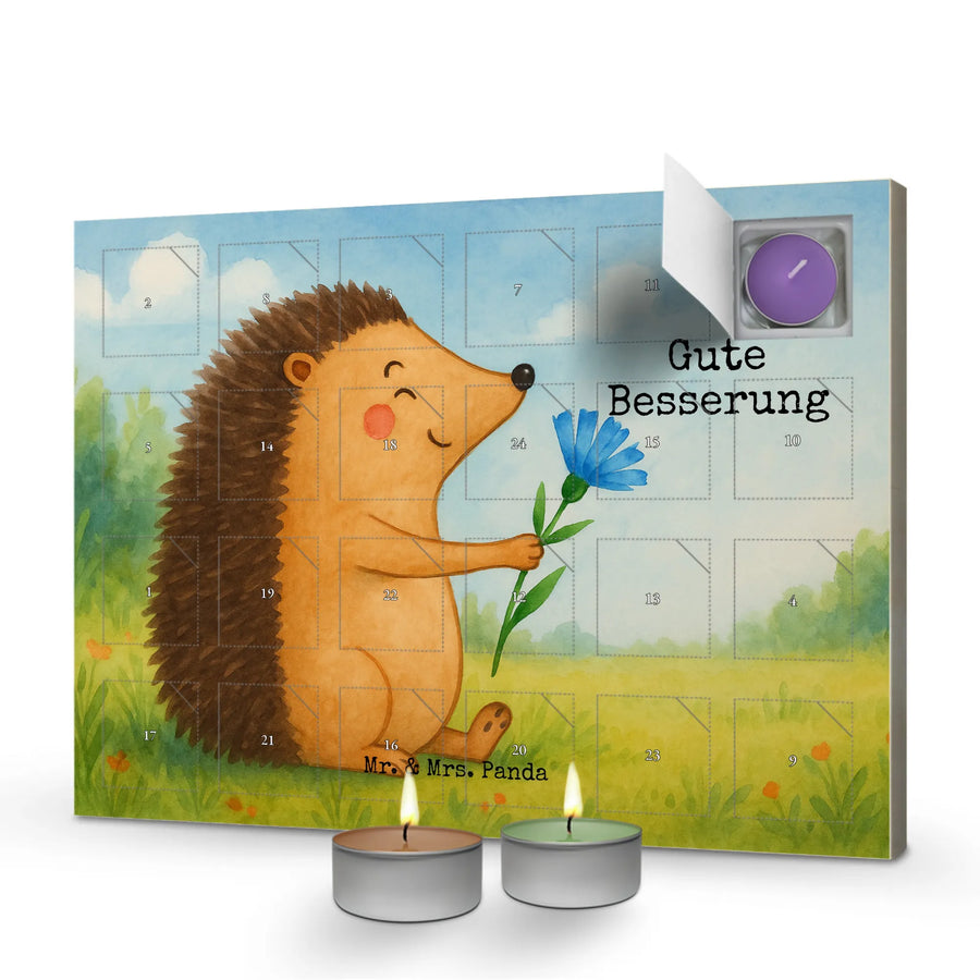 Duftkerzen Adventskalender Igel Blumen Design - mit Spruch