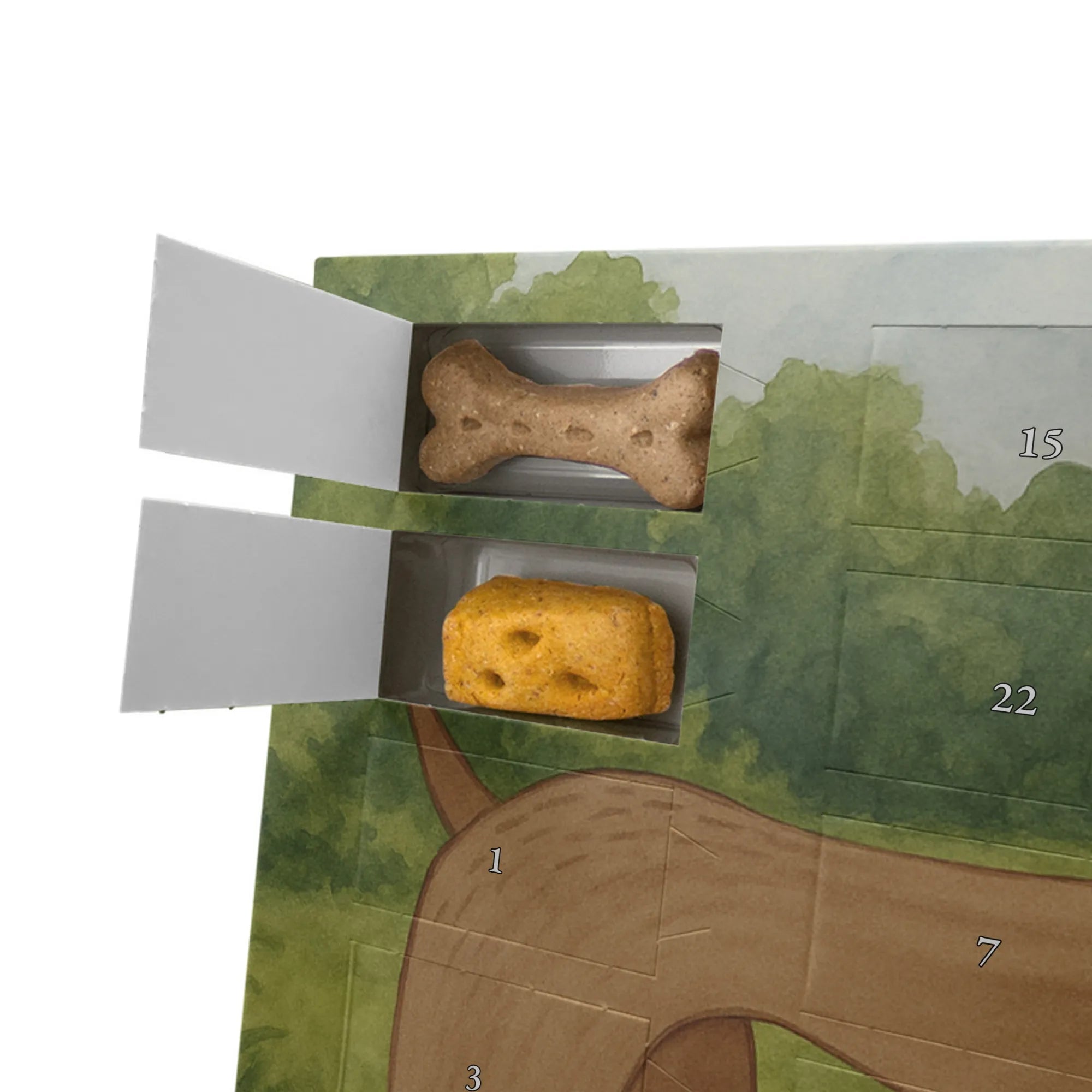 🐼 ADVENTSKALENDER FÜR HUNDE: 325×225×27 mm, aufstell- oder aufhängbar, edler Look.