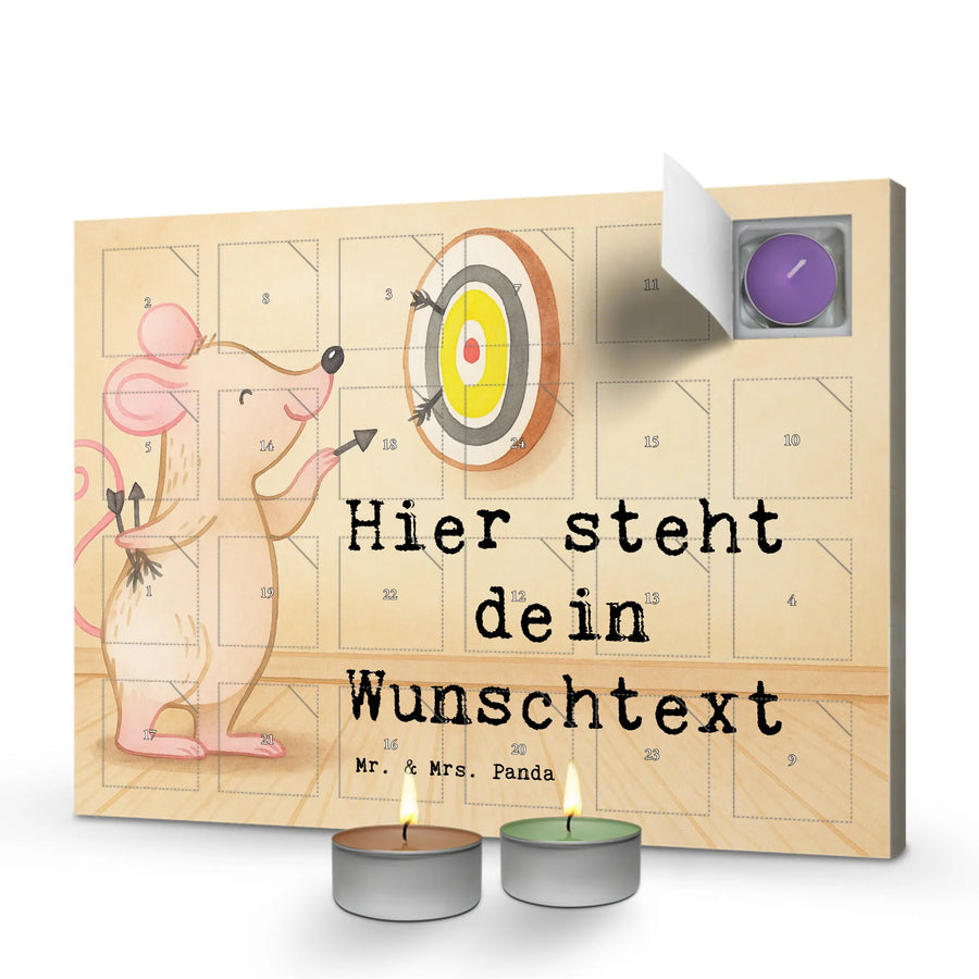 Personalisierter Duftkerzen Adventskalender Maus Dart spielen Design