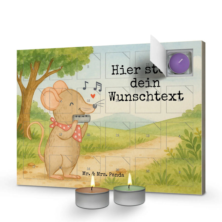 Personalisierter Duftkerzen Adventskalender Maus Mundharmonika Design – Mr. & Mrs. Panda