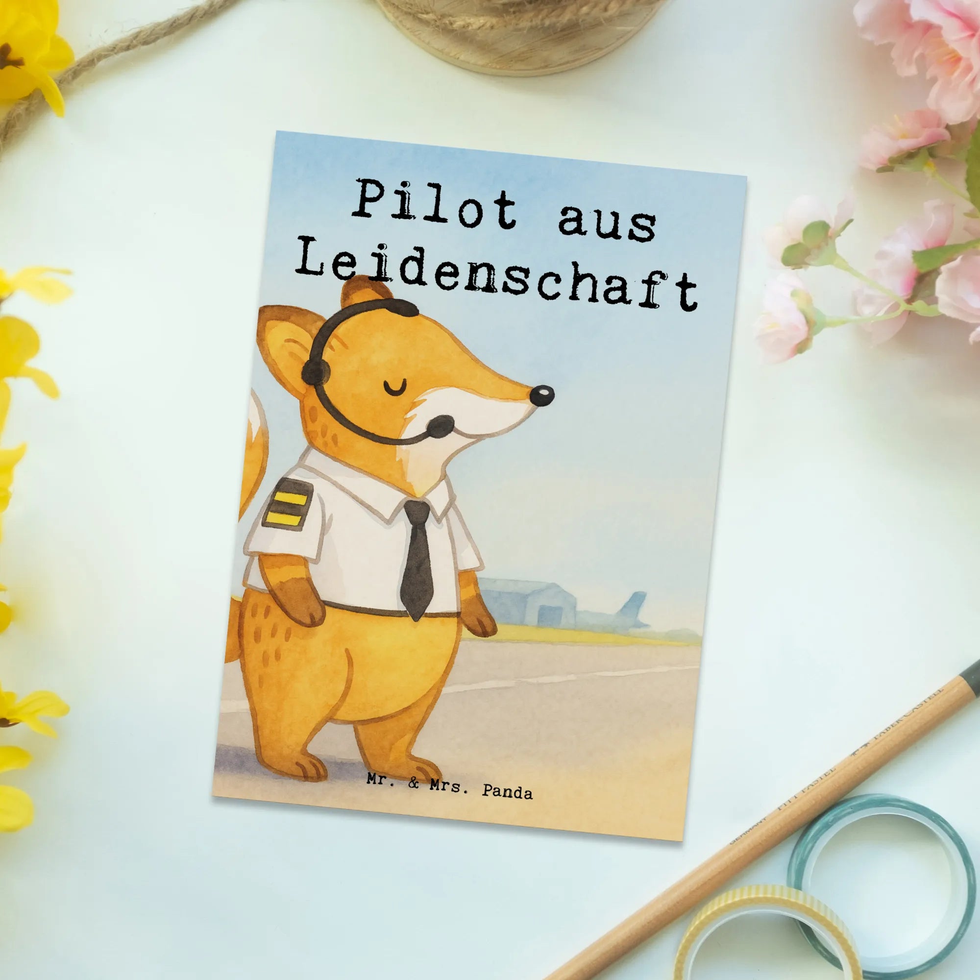 Postkarte Pilot Leidenschaft Design – Mr. & Mrs. Panda