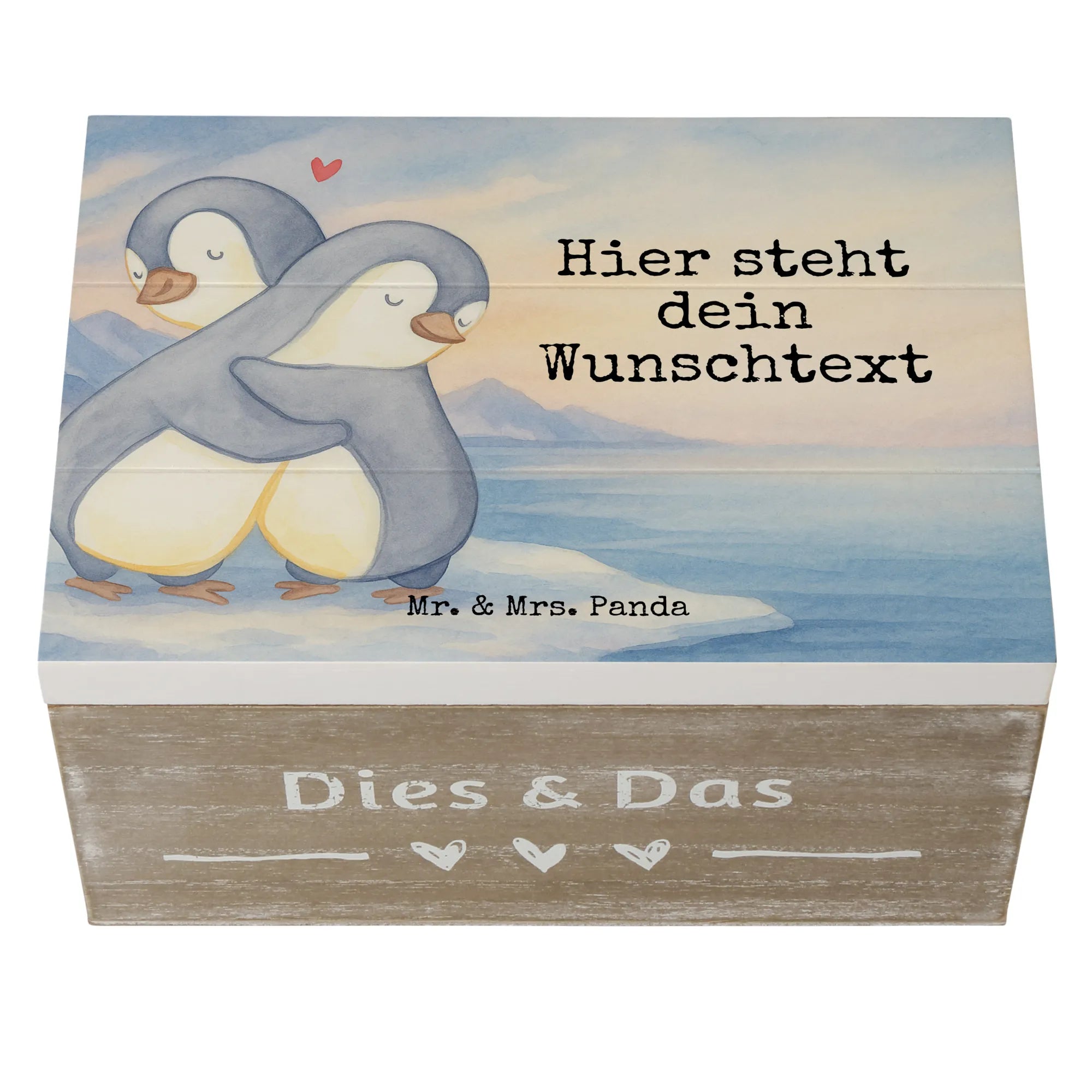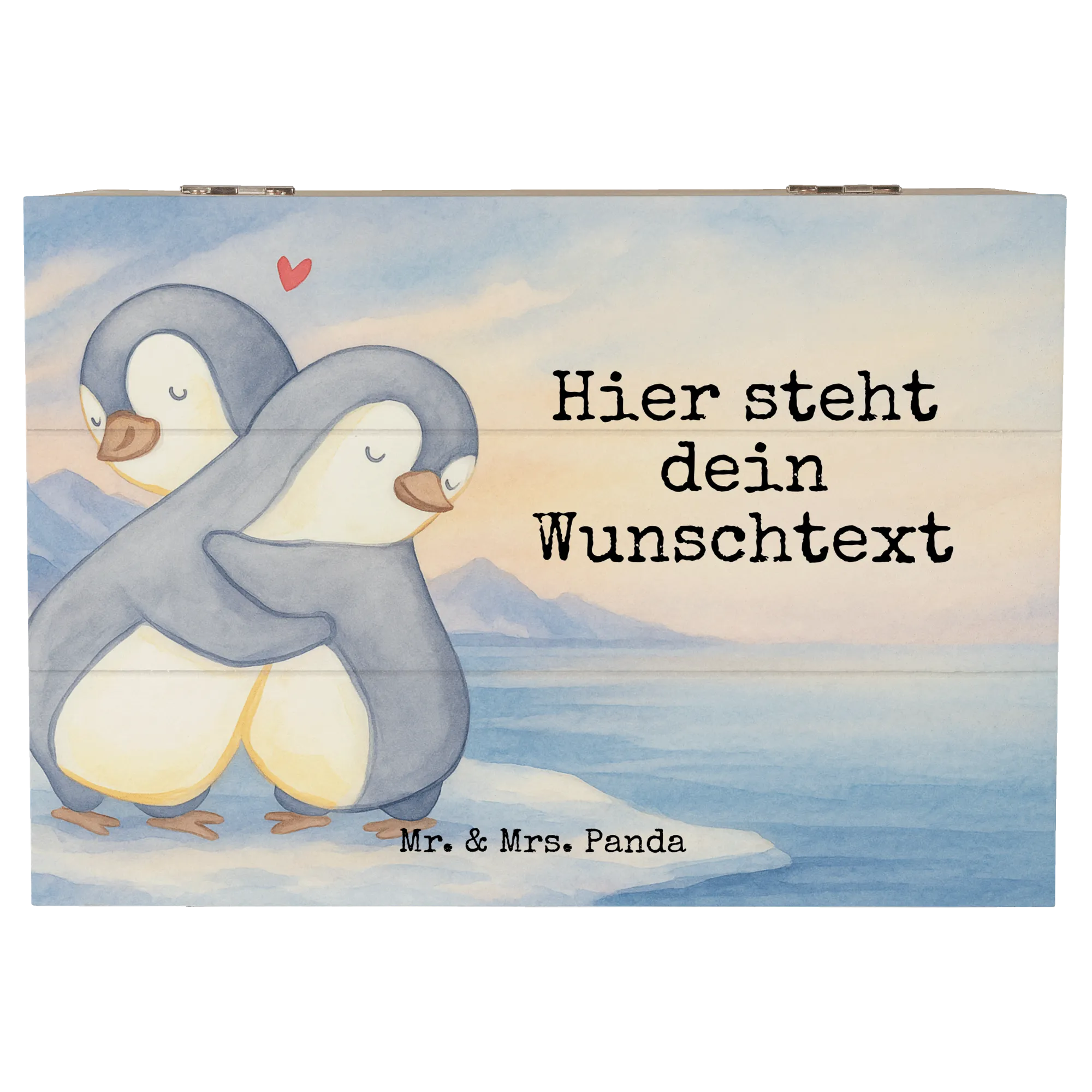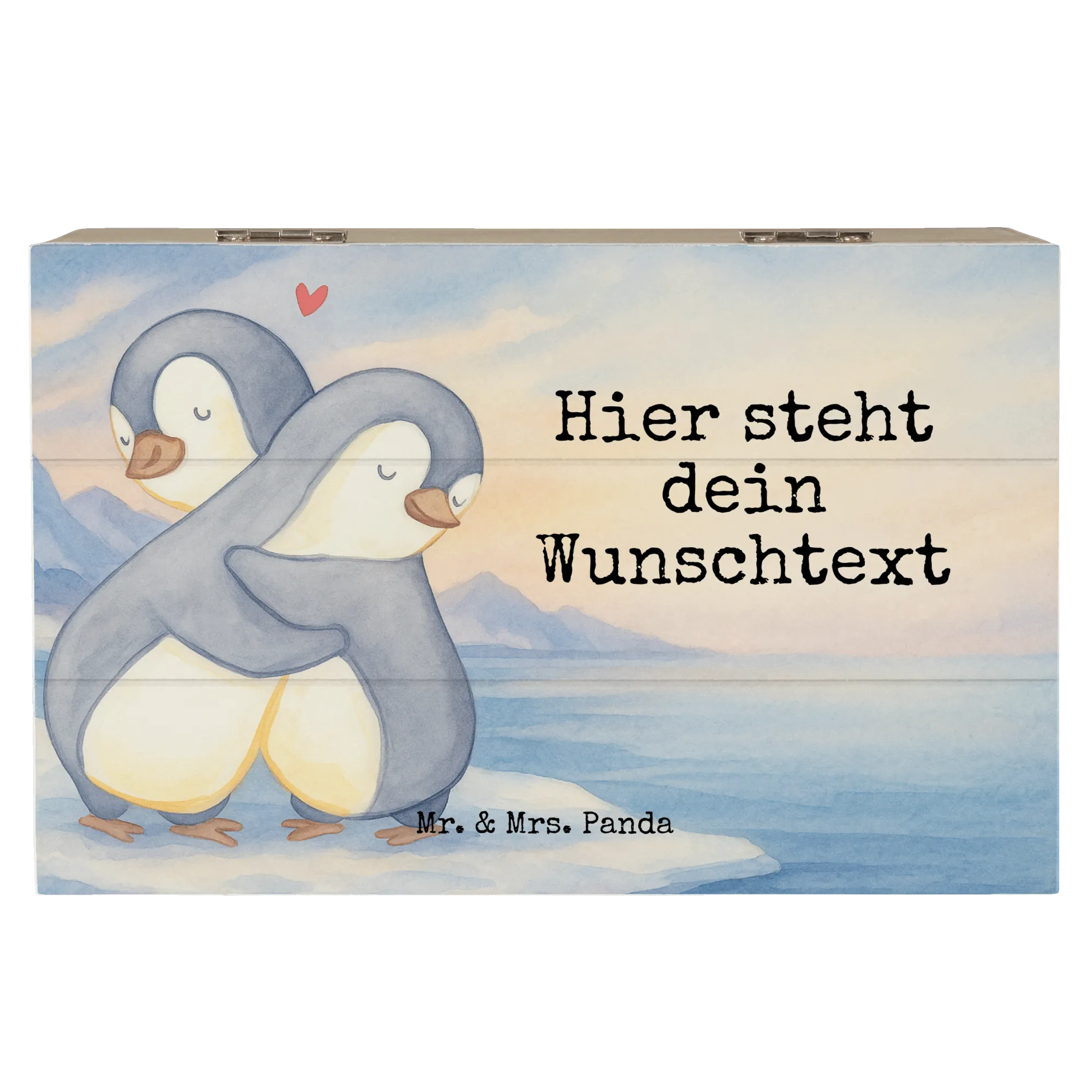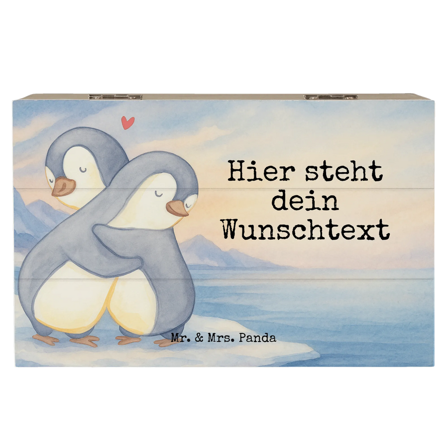 Personalisierte Holzkiste Pinguine Kuscheln Design - 19 x 12 cm