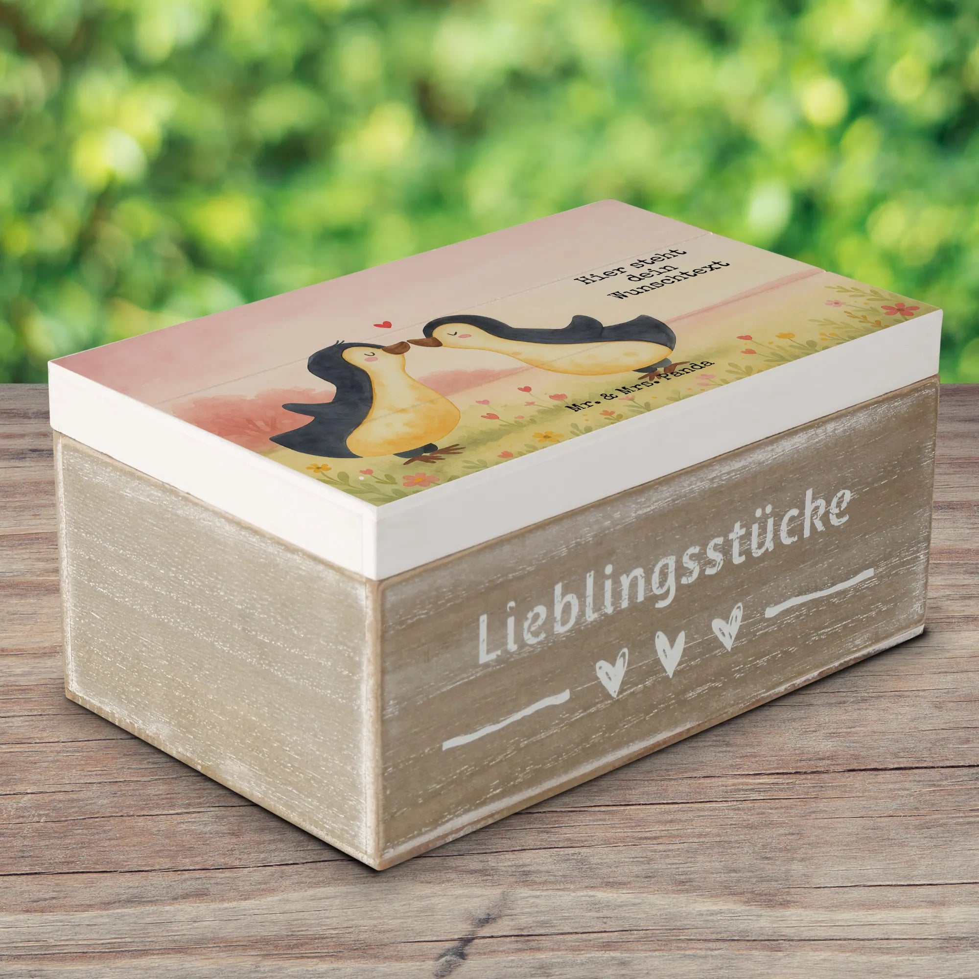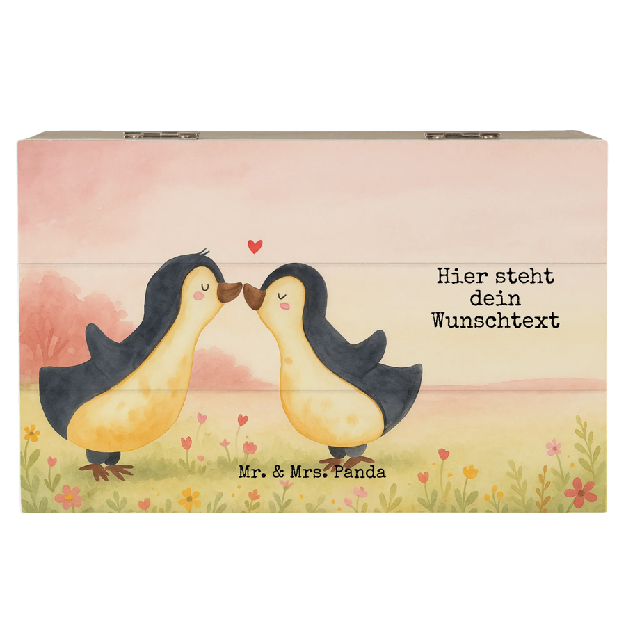 Personalisierte Holzkiste Pinguine Kuss Design - 19 x 12 cm