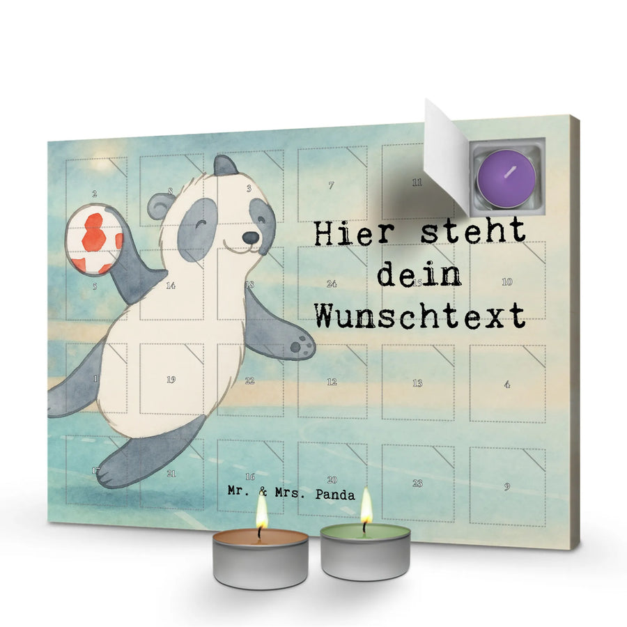 Personalisierter Duftkerzen Adventskalender Panda Handball spielen Design