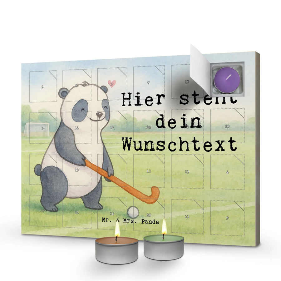 Personalisierter Duftkerzen Adventskalender Panda Hockey spielen Design