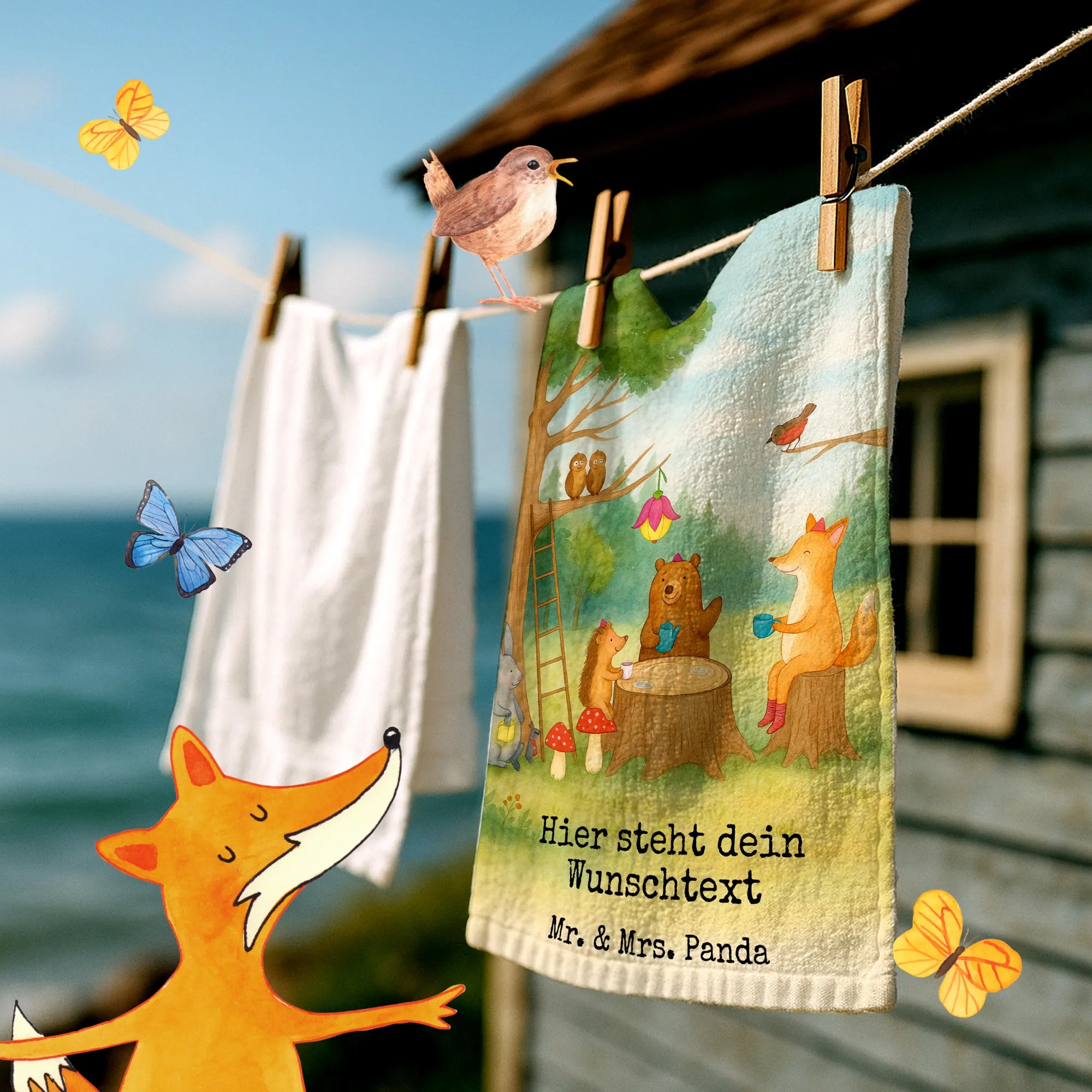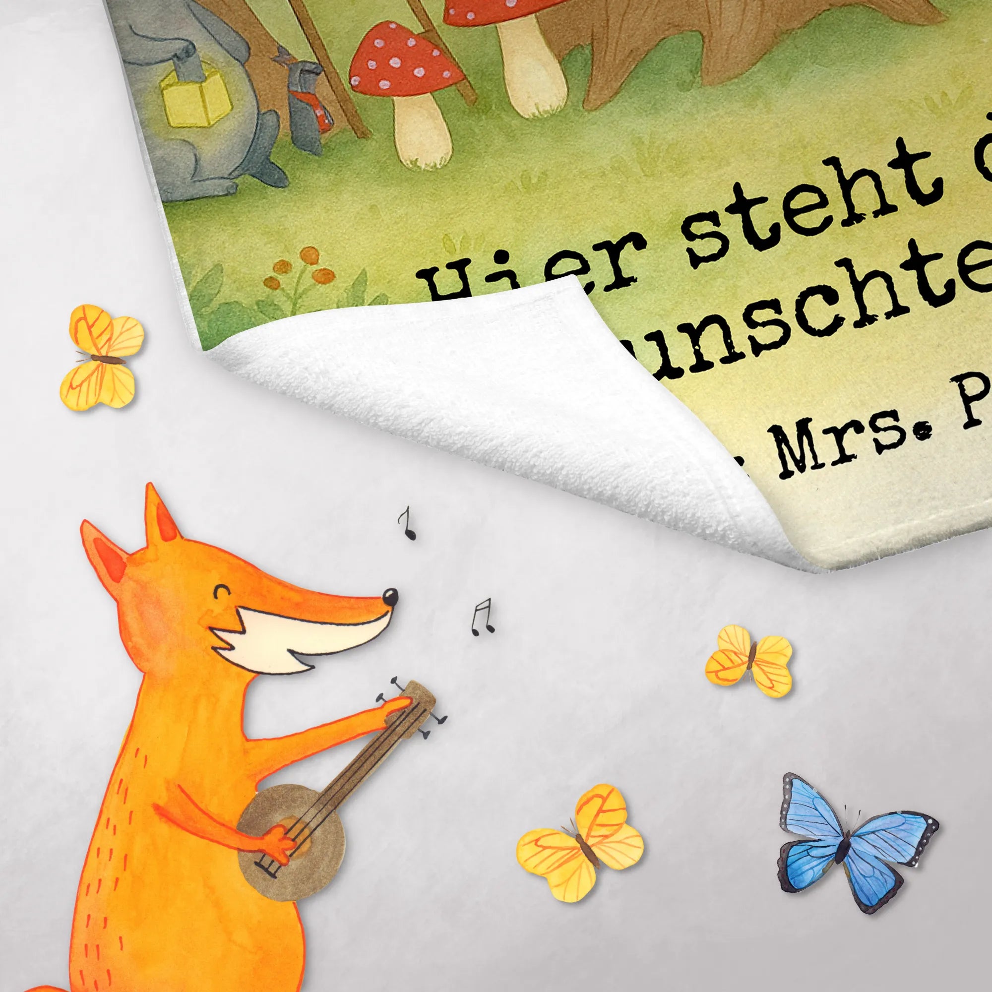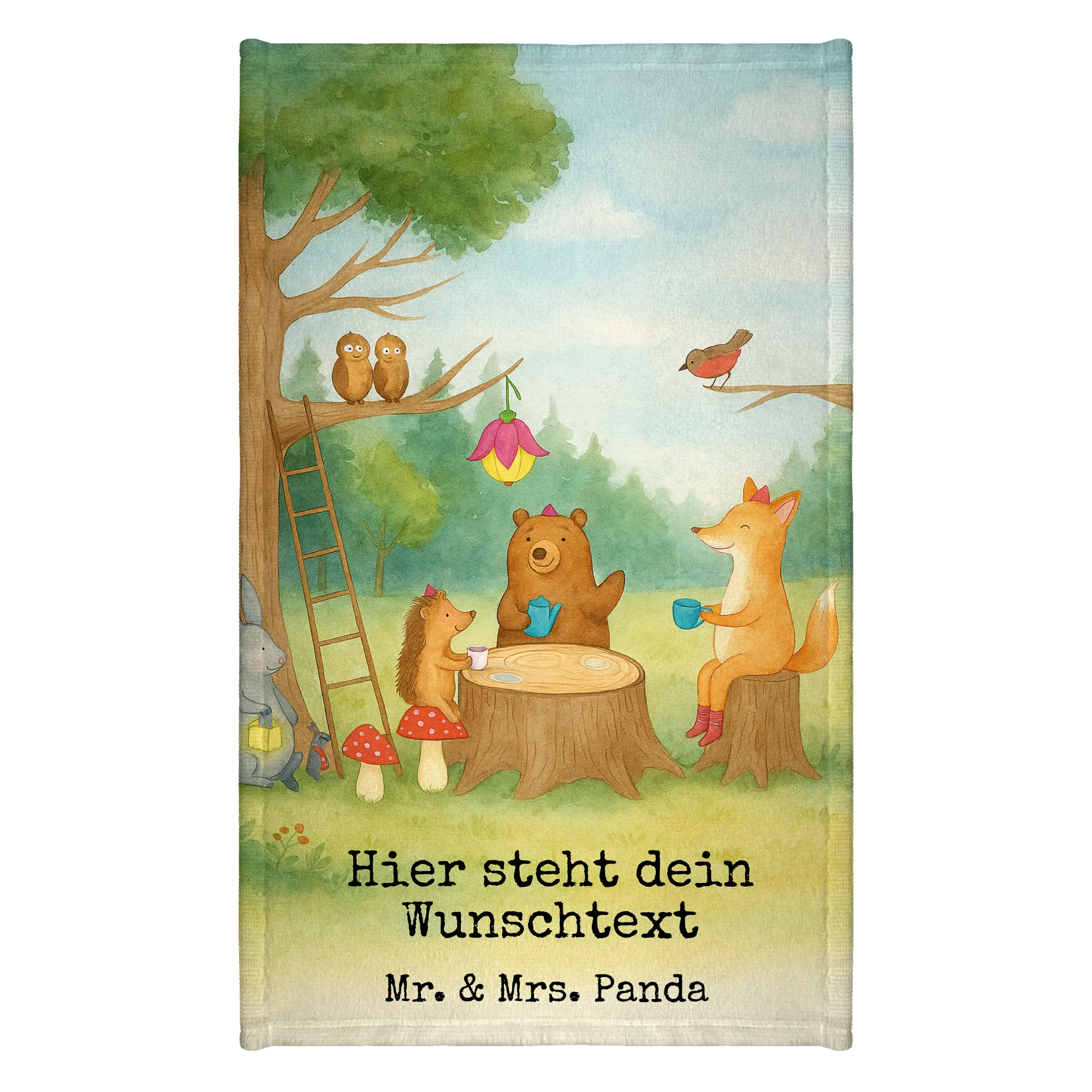 Personalisiertes Gästehandtuch Waldtiere Picknick Design