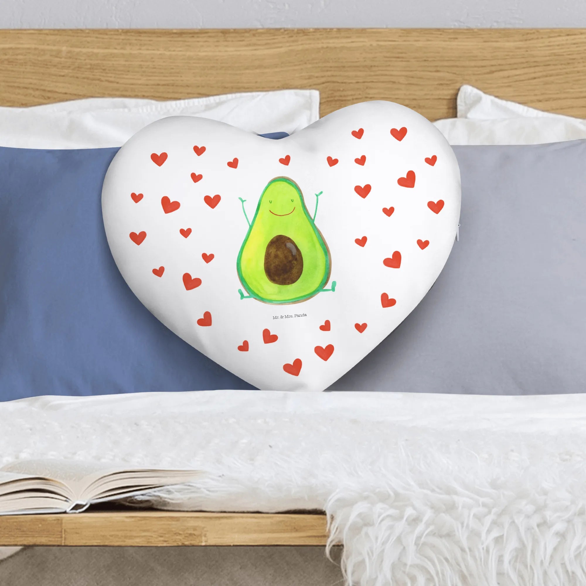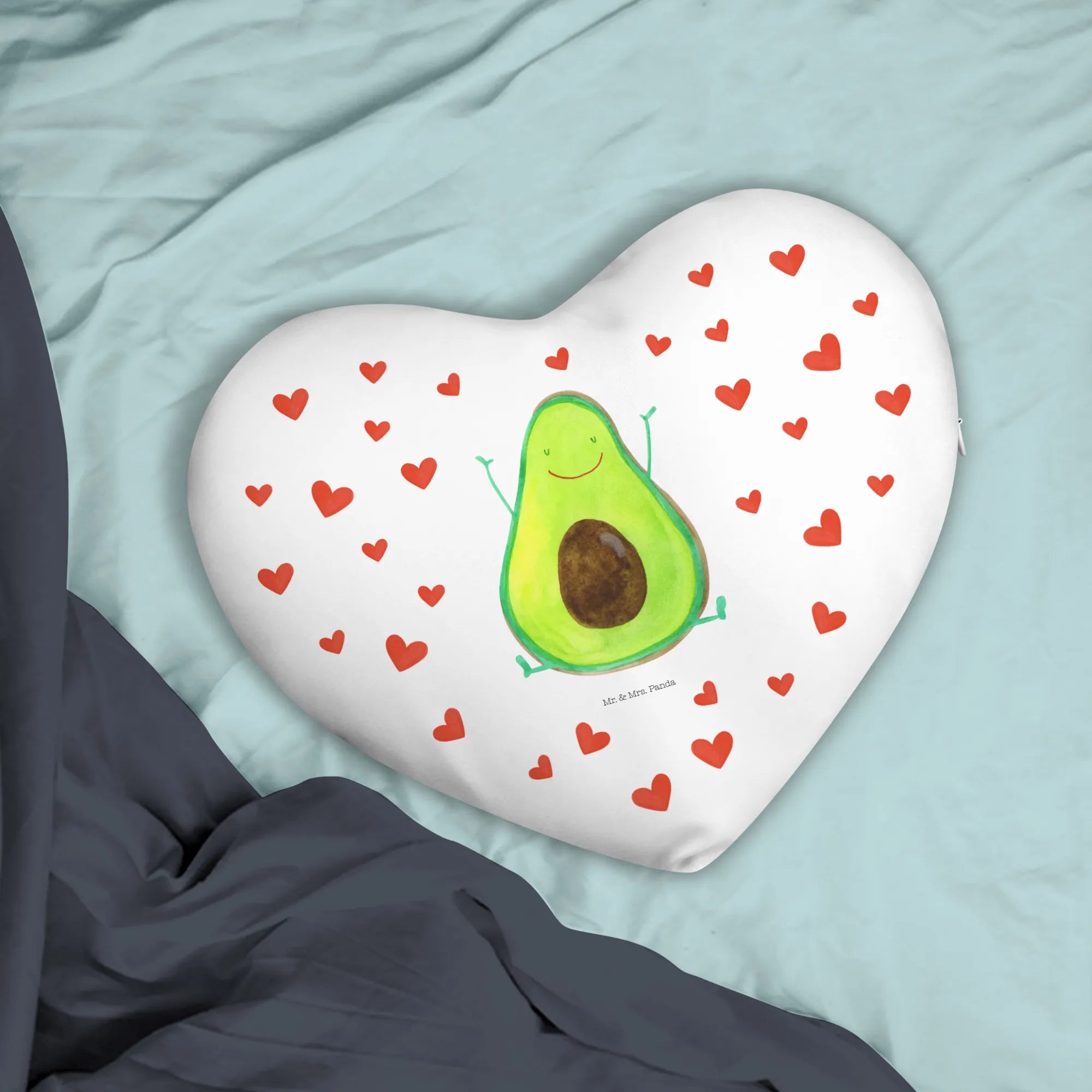 Das Herzkissen Avocado Happy von Mr. & Mrs. Panda ist das perfekte Geschenk für alle, die Liebe und Freude in ihrem Zuhause verbreiten möchten. Mit einer fröhlichen Avocado, die begeistert ihre Arme nach oben hält, bringt dieses Kissen einen Hauch von Optimismus in jeden Raum. Es wurde mit viel Liebe und Sorgfalt entworfen und ist Teil unserer liebevollen Avocado Kollektion, die zeigt, welche Wunder das Leben für uns bereithält.