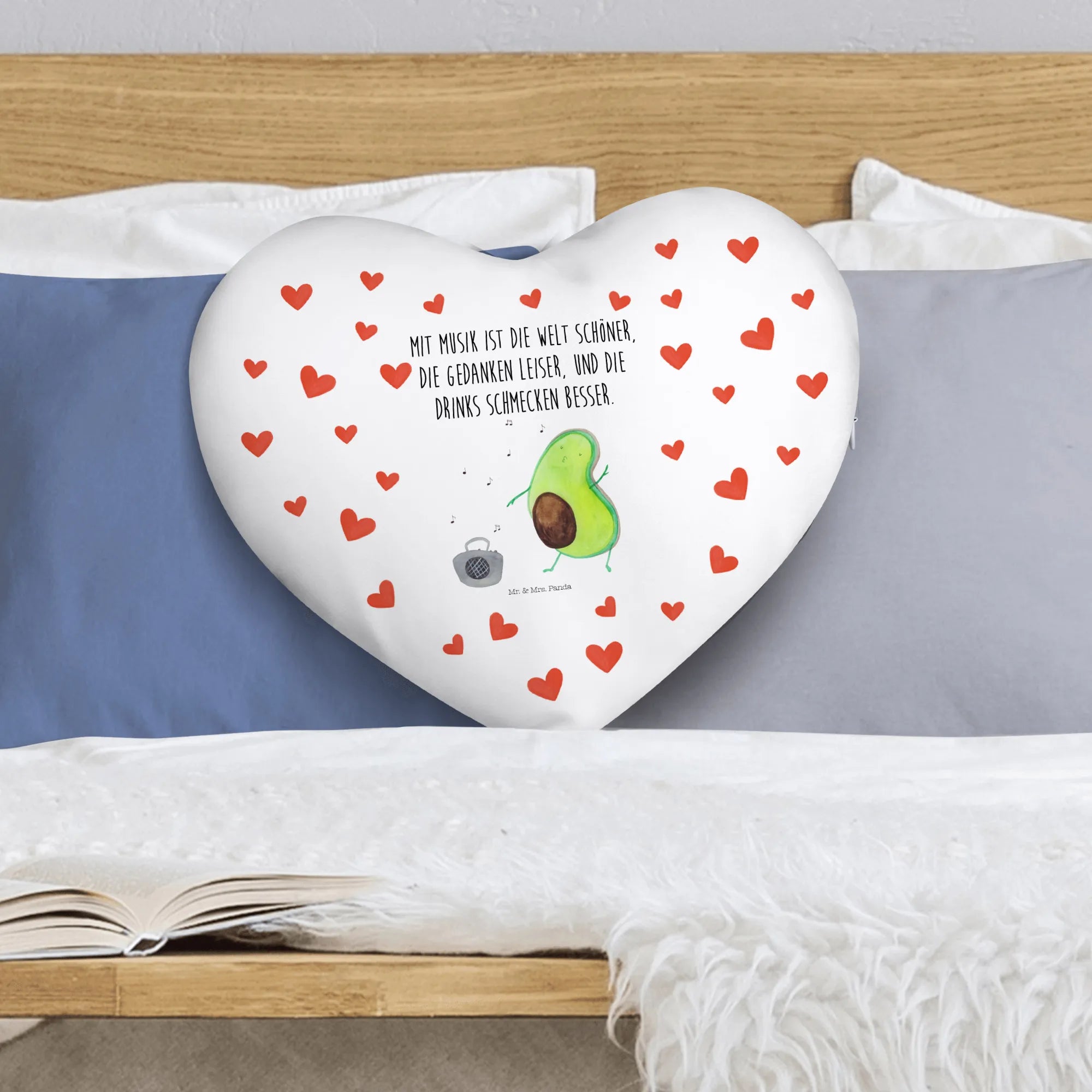 Das Herzkissen Avocado tanzt von Mr. & Mrs. Panda ist der perfekte Begleiter für alle, die ein wenig Freude und Farbe in ihr Zuhause bringen möchten. Mit seiner einzigartigen Form und dem niedlichen Motiv einer tanzenden Avocado vor einem Ghettoblaster zaubert es nicht nur ein Lächeln ins Gesicht, sondern sorgt auch für ein gemütliches Ambiente.