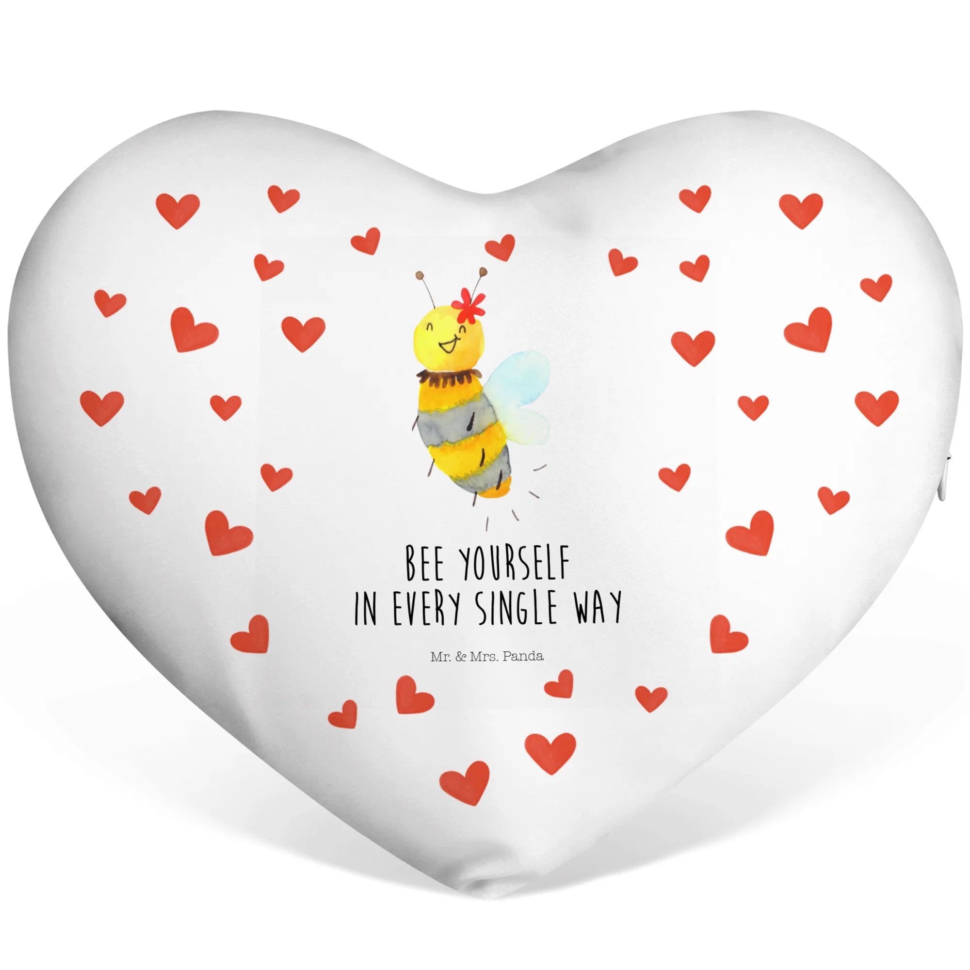 Das Herzkissen Biene Blume von Mr. & Mrs. Panda ist das perfekte Geschenk für all jene, die die Leichtigkeit des Sommers und die Schönheit der Natur lieben! Mit einem charmanten Design, das eine fröhliche Biene auf einer Blume zeigt, bringt dieses Kissen sofort eine gute Stimmung in jeden Raum.
