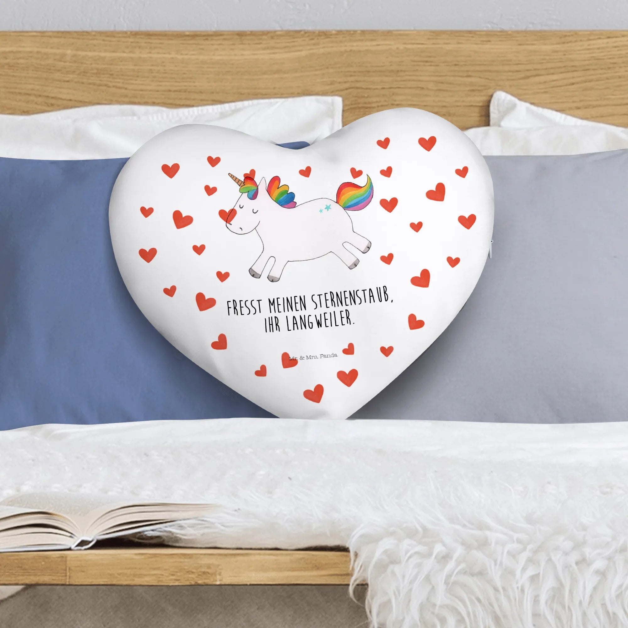 Nutze das Herzkissen als dekoratives Element in deiner Wohnung oder als kuschelige Unterstützung auf der Couch. Die Einhorn-Kollektion von Mr. & Mrs. Panda umfasst eine Vielzahl von liebevoll gestalteten Einhorn-Motiven und ist ideal für Groß und Klein.
