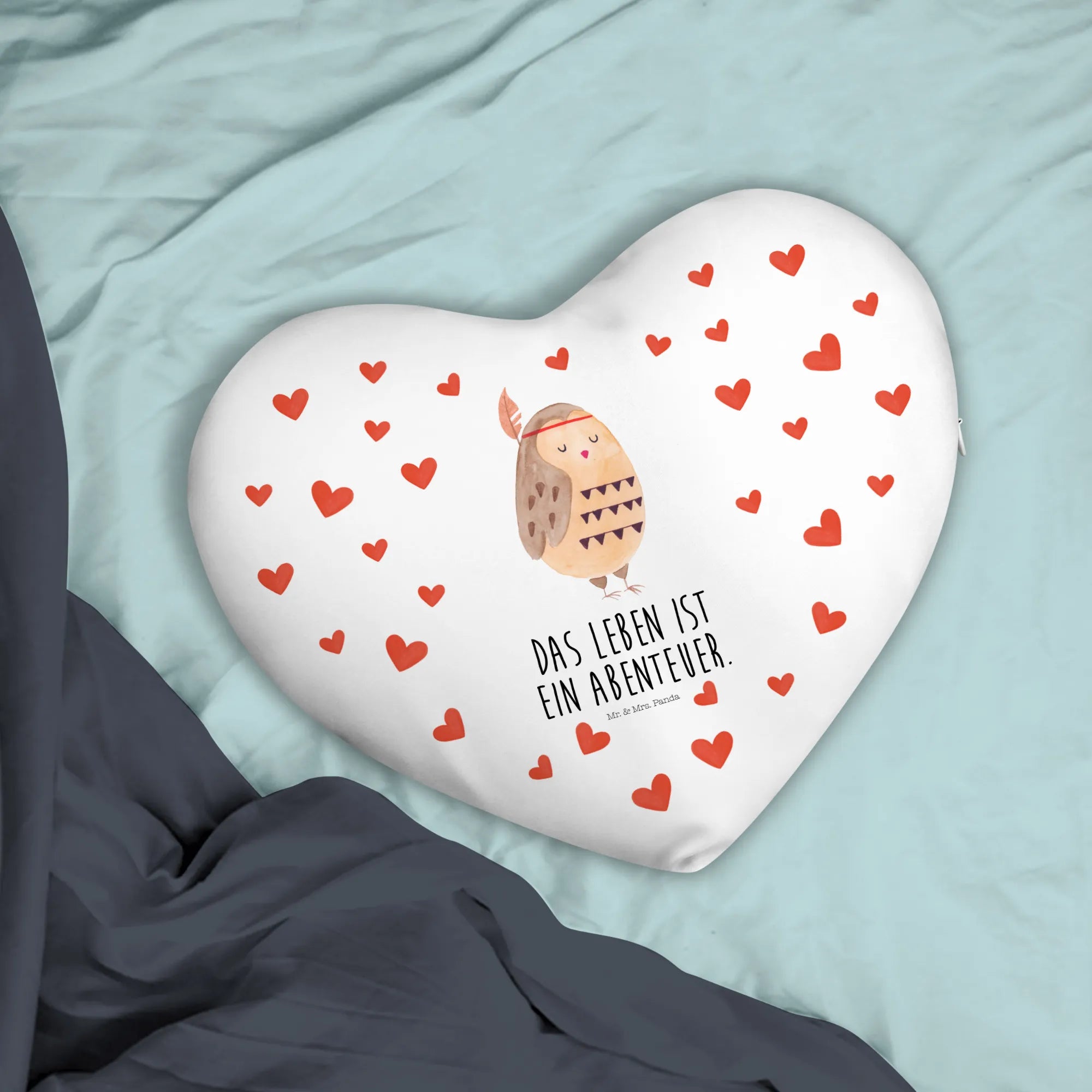 Vor allem als Geschenk zur Einweihung einer neuen Wohnung, für den Kindergartenbeginn oder einfach, um jemandem eine Freude zu machen, ist das Herzkissen mit der Eule Federschmuck immer eine gute Wahl. Lass die Eule sprechen und teile die Botschaft: "Das Leben ist ein Abenteuer!"