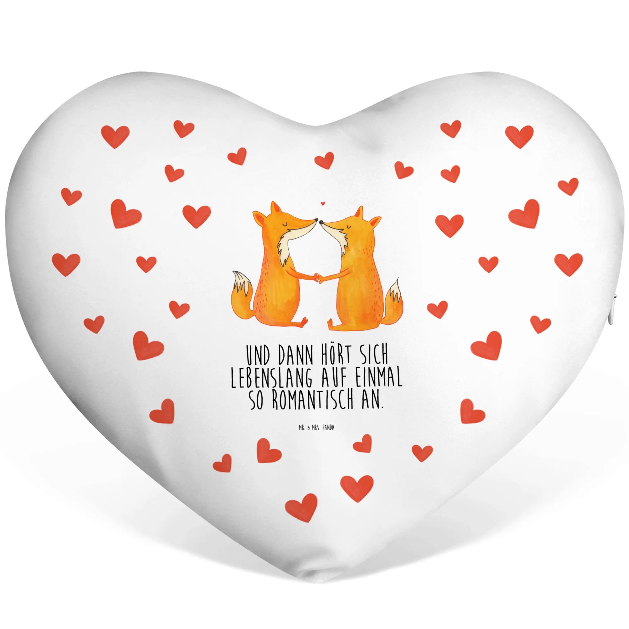 Das Herzkissen "Füchse Liebe" von Mr. & Mrs. Panda ist das ideale Geschenk für alle, die das Besondere lieben. Mit seinem einzigartigen Herzdesign und den niedlichen Füchsen, die Hand in Hand sitzen, ist es nicht nur ein dekoratives Element für dein Zuhause, sondern auch ein Liebesbeweis für deinen Partner, deine Partnerin oder deine Liebsten.