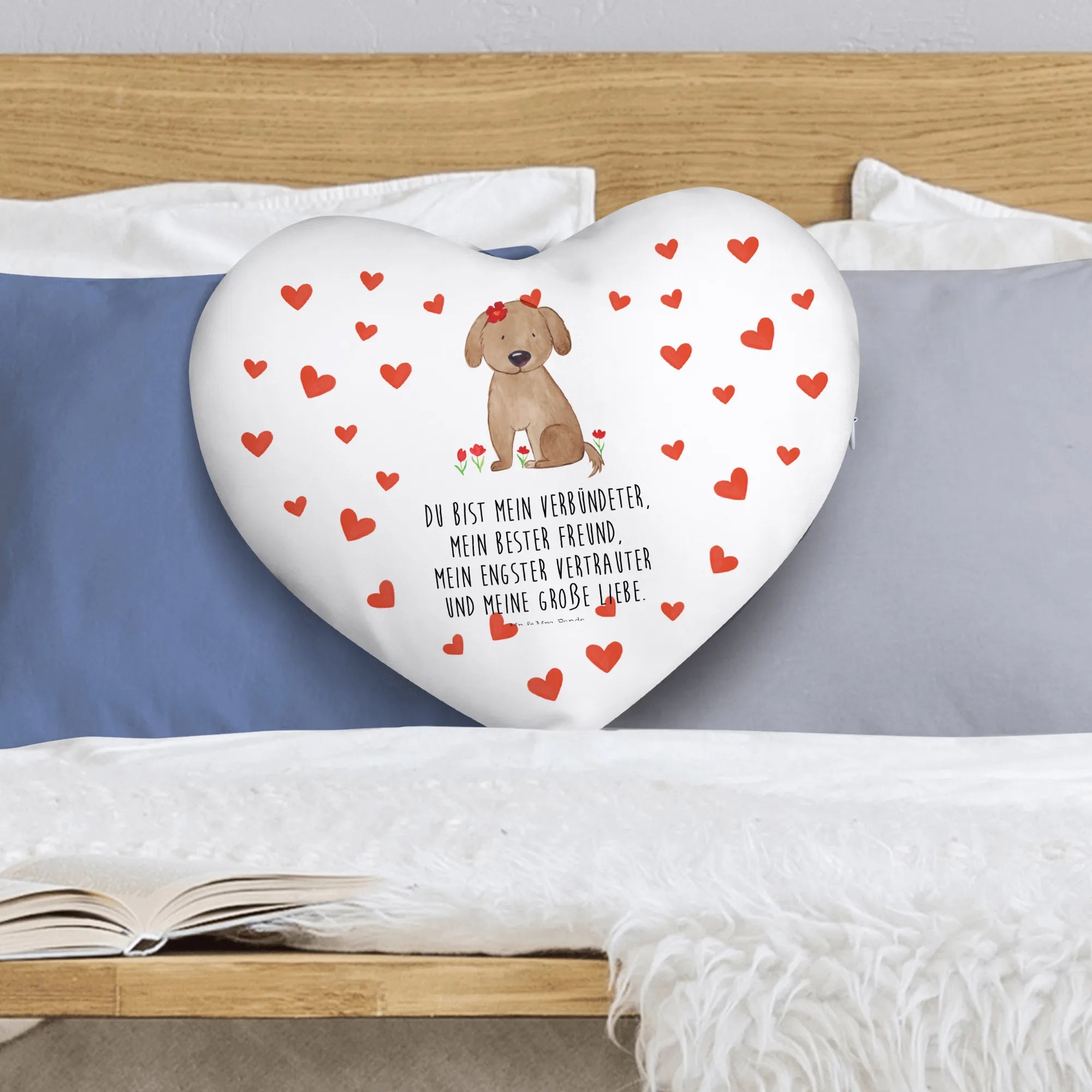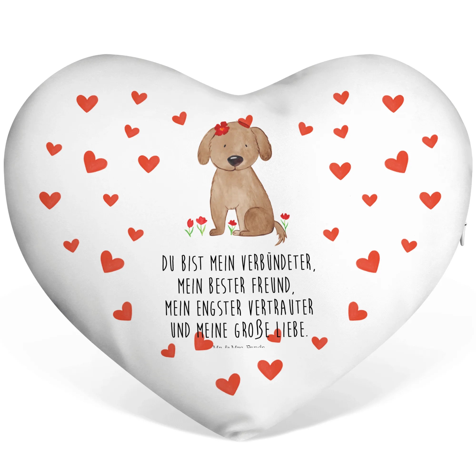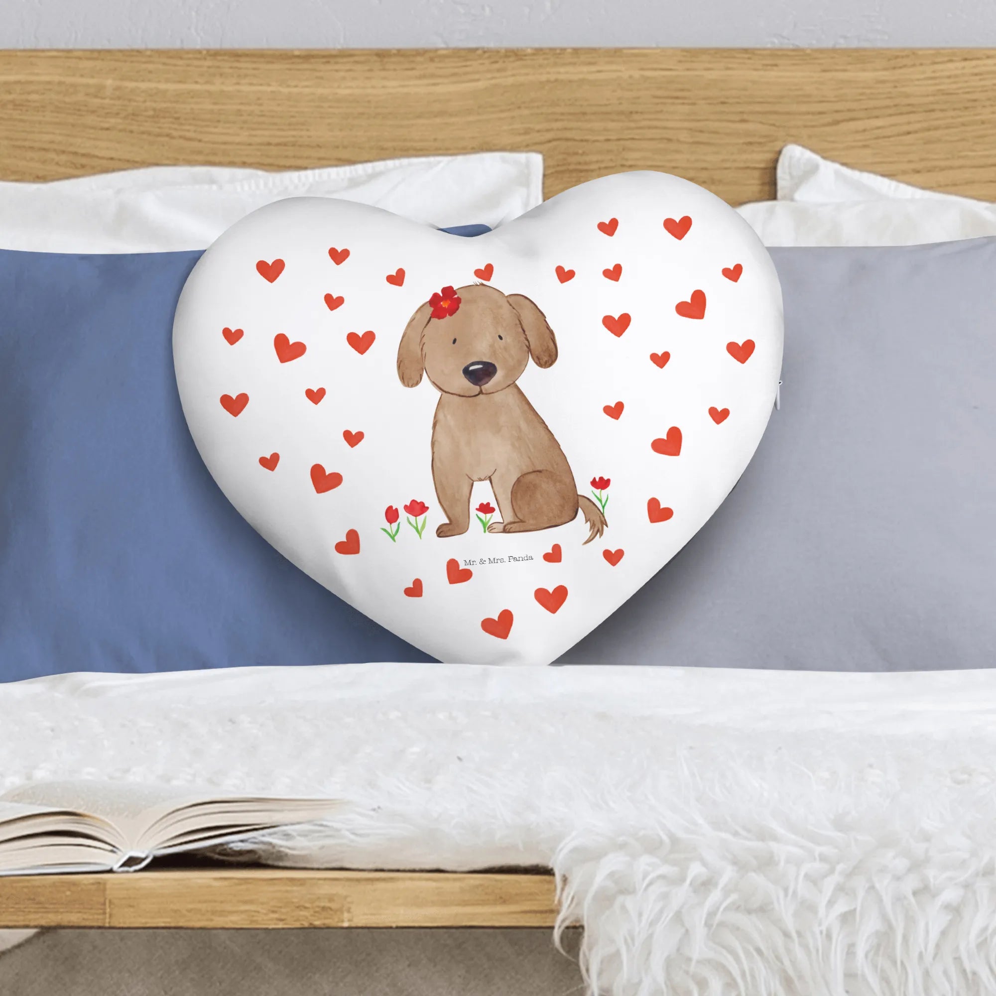 Das Herzkissen "Hund Hundedame" von Mr. & Mrs. Panda ist das perfekte Geschenk für Hundeliebhaber! 🎁 Mit einem einzigartigen Design, das eine niedliche Hundedame mit einer Blume auf dem Kopf zeigt, bringt dieses Kissen viel Freude und Gemütlichkeit in jedes Zuhause. Das Herzmotiv strahlt pure Liebe zu Hunden aus und vermittelt ein Gefühl der Verbundenheit zu dem treuesten Begleiter des Menschen.