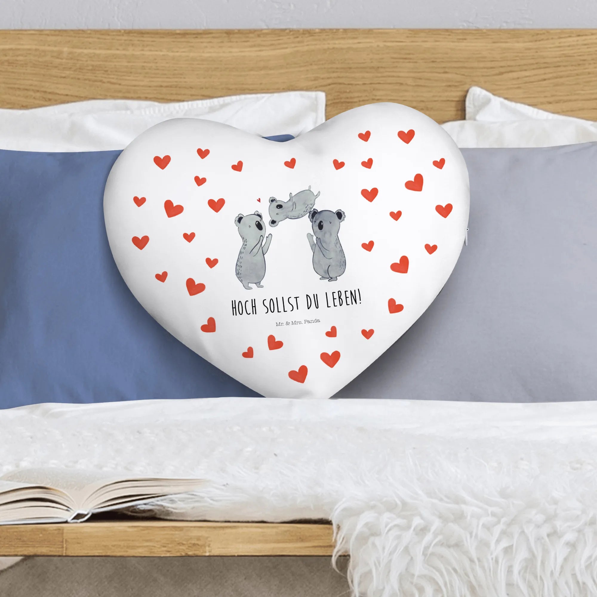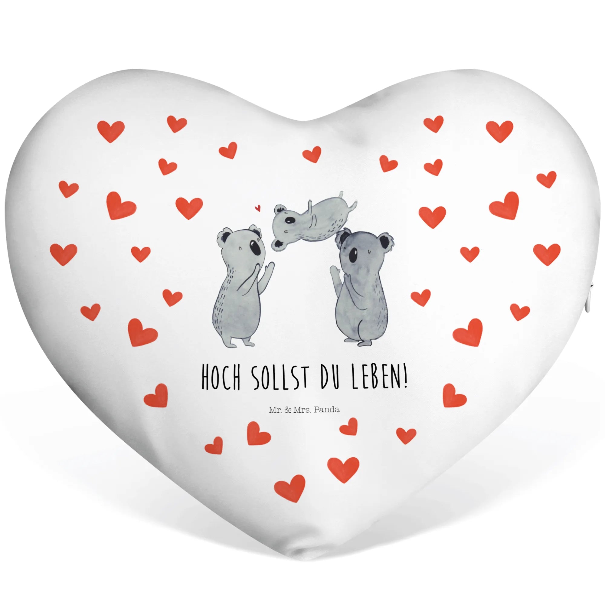 Mit zwei zauberhaften Koalas, die fröhlich den kleinen Koala in die Luft werfen, wird das Kissen zum fröhlichen Blickfang. Ihre Farben und das süße Design schreien förmlich nach Freude und Liebe! ❤️ Das Herzkissen hat die Maße 390 mm x 340 mm und ist aus superflauschiger Mikrofaser gefertigt, die sich perfekt zum Kuscheln eignet.