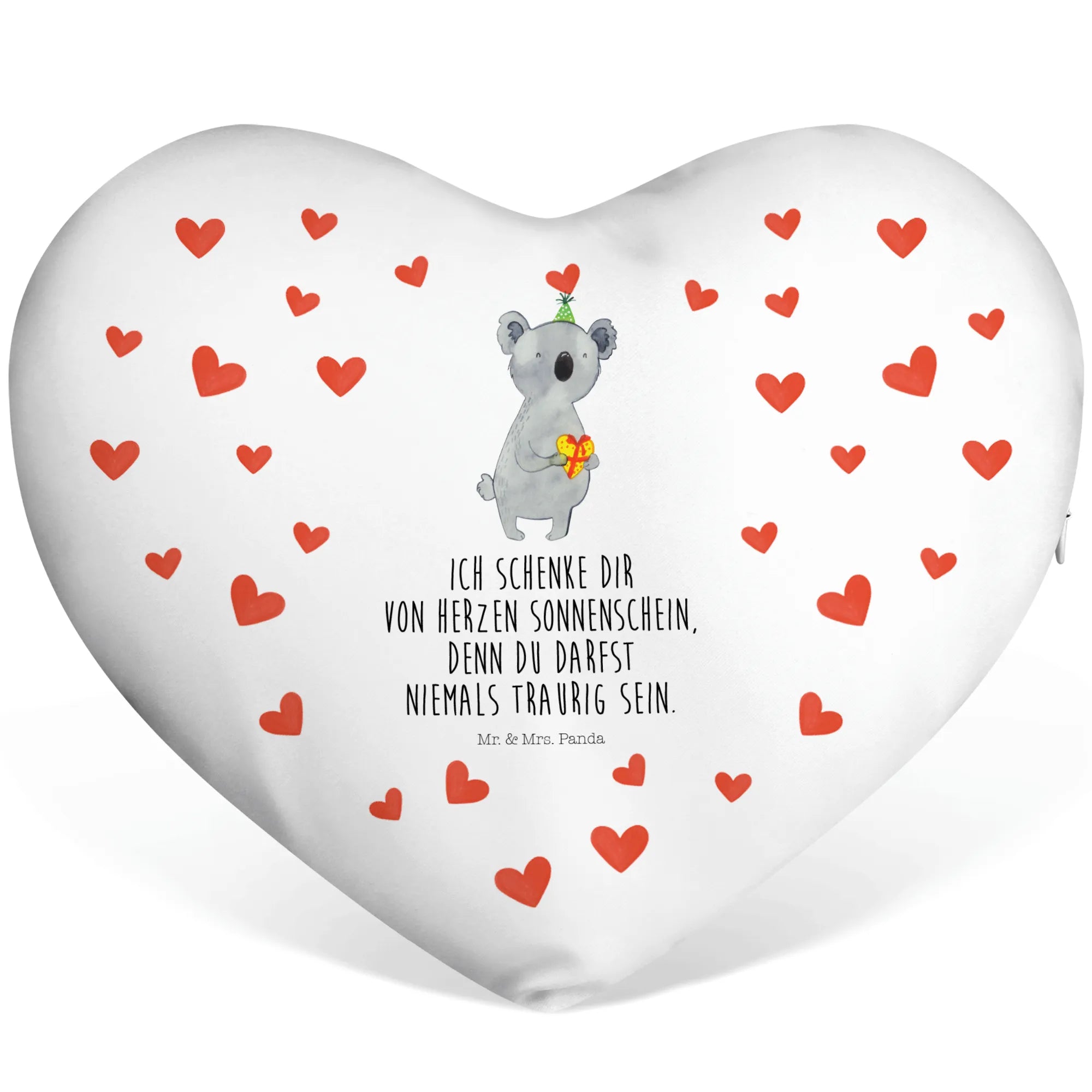 Entdecke das perfekte Geschenk für alle Koala-Fans! Unser wunderschönes Herzkissen mit dem süßen Koala-Motiv ist nicht nur entzückend, sondern auch ein kuscheliger Begleiter für jeden Anlass. Mit der liebevollen Botschaft 'Ich schenke dir von Herzen Sonnenschein, denn du darfst niemals traurig sein.' zaubert es jedem ein Lächeln ins Gesicht.