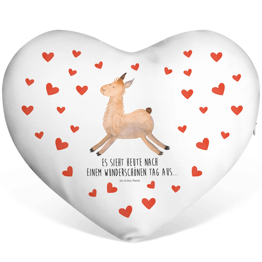 Das Herzkissen mit dem süßen Motiv "Lama springend" aus der kleinen Lama-Kollektion von Mr. & Mrs. Panda ist der perfekte Begleiter für jeden Tag! Es strahlt mit seinem fröhlichen Design pure Lebensfreude aus und bringt jedem, der es sieht, ein Lächeln ins Gesicht. Das Kissen hat die zauberhaften Maße von 390 mm x 340 mm und ist aus superfluffiger Mikrofaser gefertigt, die ein angenehmes Kuschelgefühl bietet. Mit dem liebevoll handgezeichneten Lama, das fröhlich in die Luft springt, bist Du bestens gewappnet für deinen Lieblingstag!