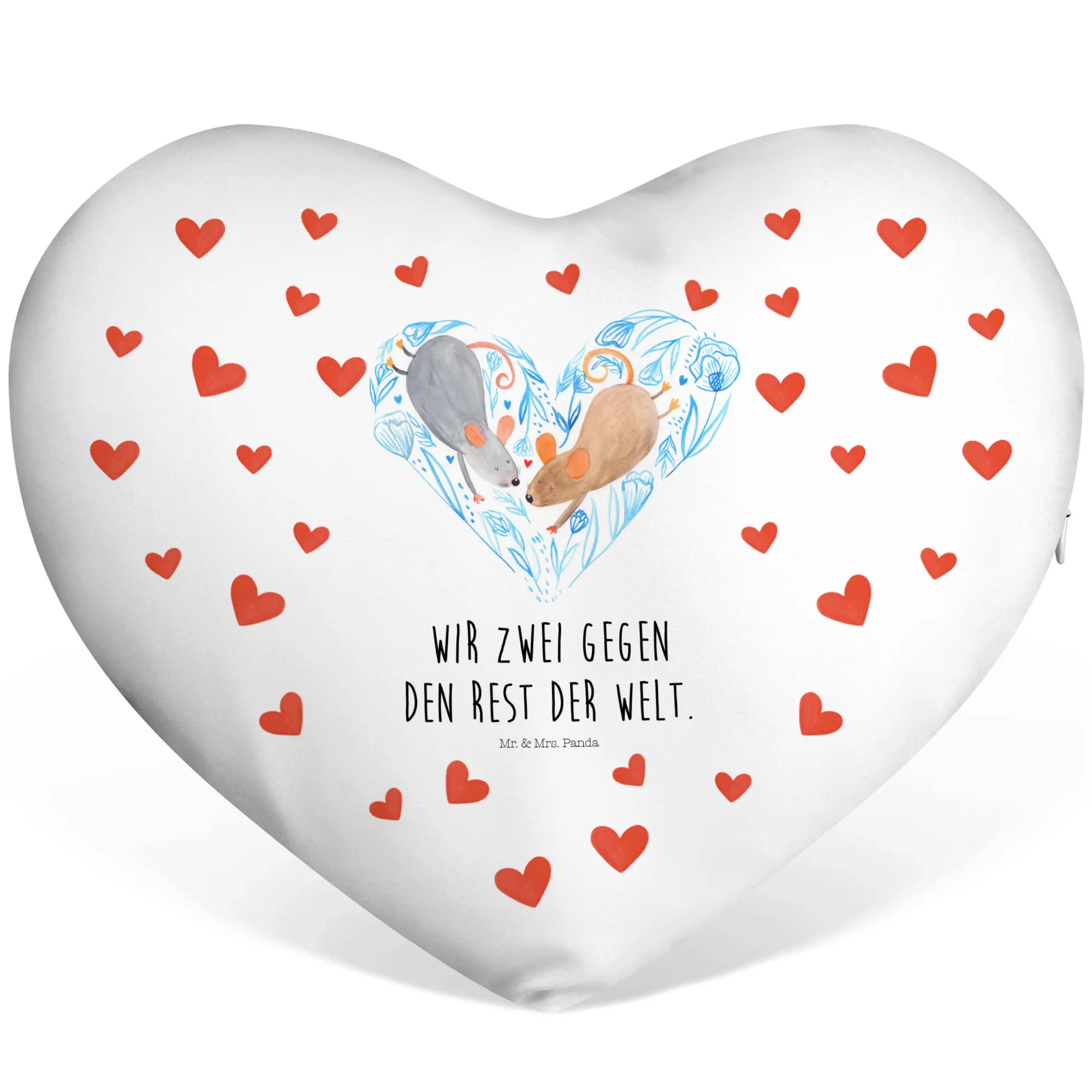 Das Herzkissen "Mäuse Herz" von Mr. & Mrs. Panda ist der perfekte Ausdruck von Liebe und Zuneigung. Mit einem zuckersüßen Design, das zwei niedliche Mäuse zeigt, die gemeinsam die Form eines Herzens bilden, ist dieses Kissen nicht nur ein dekorativer Hingucker, sondern auch ein großartiges Geschenk für deinen Lieblingsmenschen.