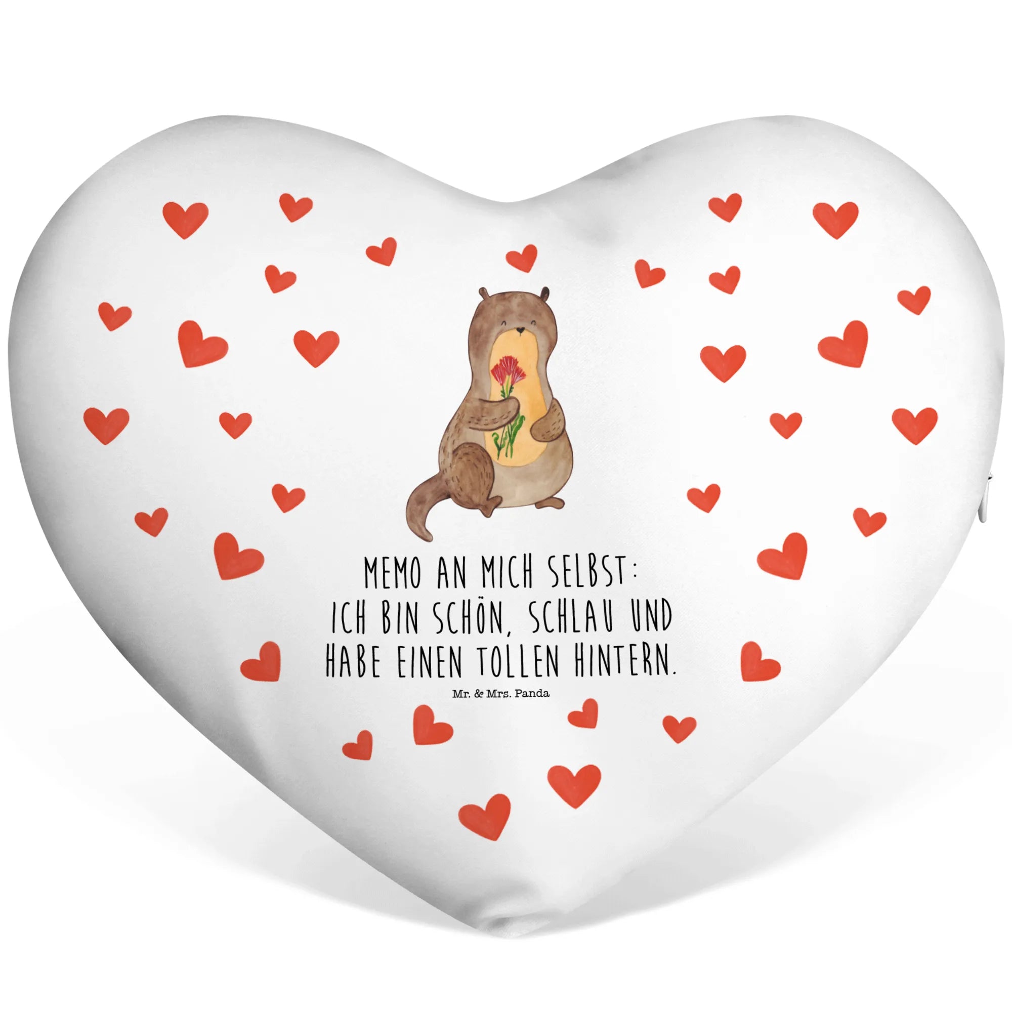 Du suchst nach einem ganz besonderen Geschenk, das nicht nur schön aussieht, sondern auch Freude bringt? Dann ist das Herzkissen "Otter Blumenstrauß" von Mr. & Mrs. Panda genau das Richtige für dich! Dieses einzigartige Kissen vereint kuschelige Weichheit mit einem fröhlichen Motiv, das das Herz erwärmt. Der süße Seeotter, der einen bunten Blumenstrauß in seinen Pfoten hält, zaubert jedem ein Lächeln ins Gesicht und bringt gute Laune in jedes Zuhause.