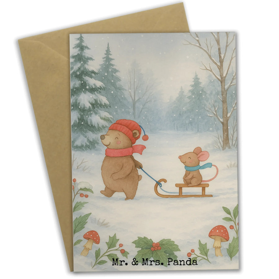 Grußkarte Bär und Maus Schlitten Design