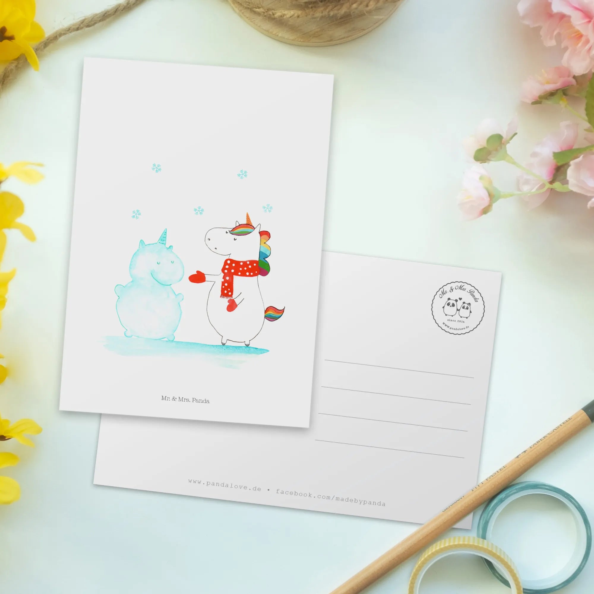 Verschenke ein Stück Magie und einen guten Grund zum Schmunzeln – mit der Einhorn Schneemann Postkarte von Mr. & Mrs. Panda. 🎁✨