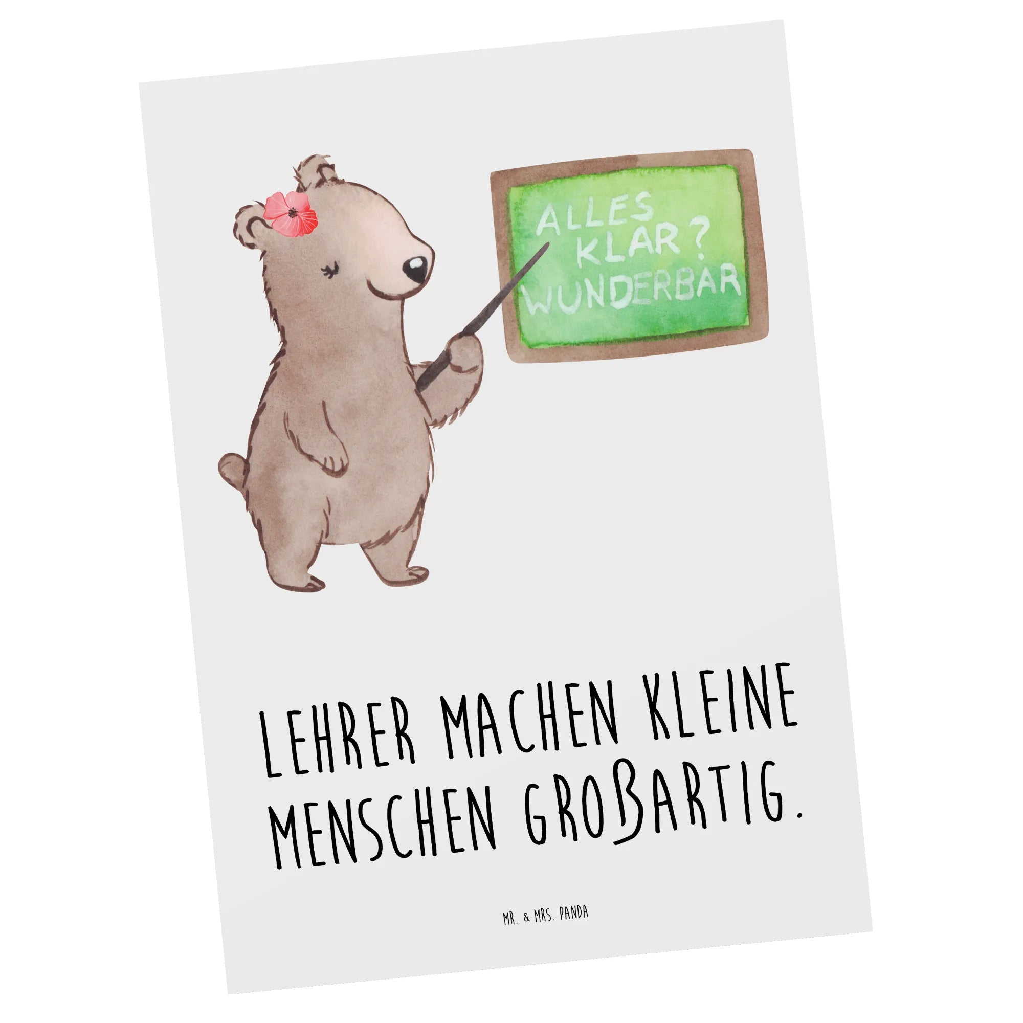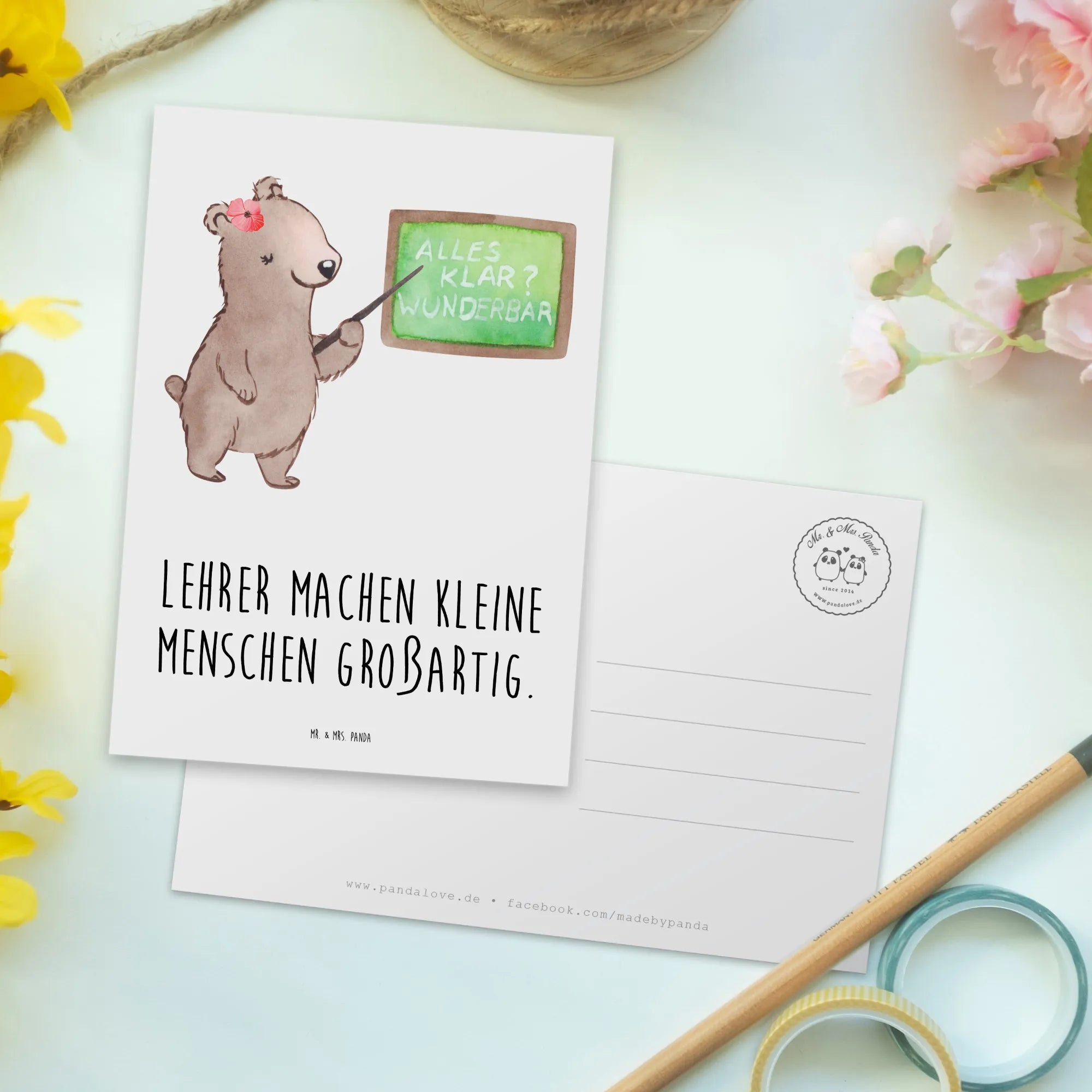 Schenke Wertschätzung mit Stil. Die Postkarte "Lehrer" aus der Danke‑Kollektion von Mr. & Mrs. Panda trägt den liebevollen Spruch „Lehrer machen kleine Menschen großartig.“ und ist damit die perfekte Grußkarte, um Dankbarkeit auszudrücken.