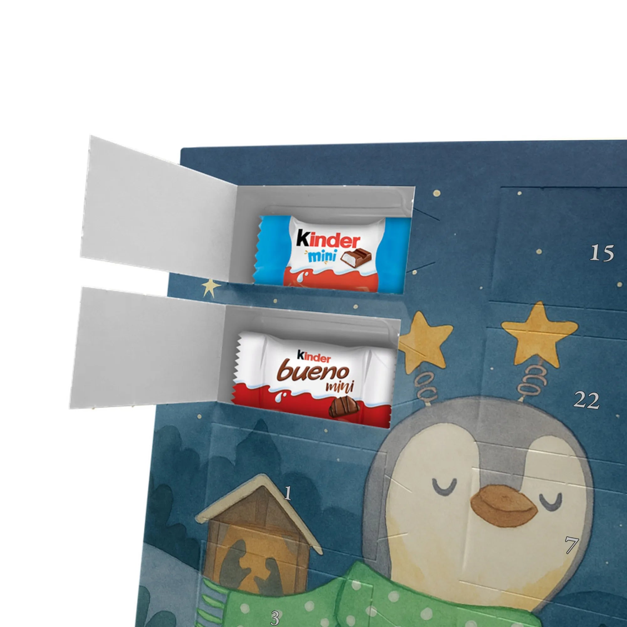 Dieser Schokoladen Adventskalender verbindet liebevolles Design mit bekannten Genussmomenten: Gefüllt mit kinder® Schoko-Bons, kinder® Bueno mini und kinder® Schokolade mini ist er ein wahrer Klassiker unter den Adventskalendern mit Schokolade. Perfekt als Geschenk für Kinder, als Weihnachtskalender Schokolade für Paare oder als süße Aufmerksamkeit für Freundinnen, Freunde und Kolleginnen.