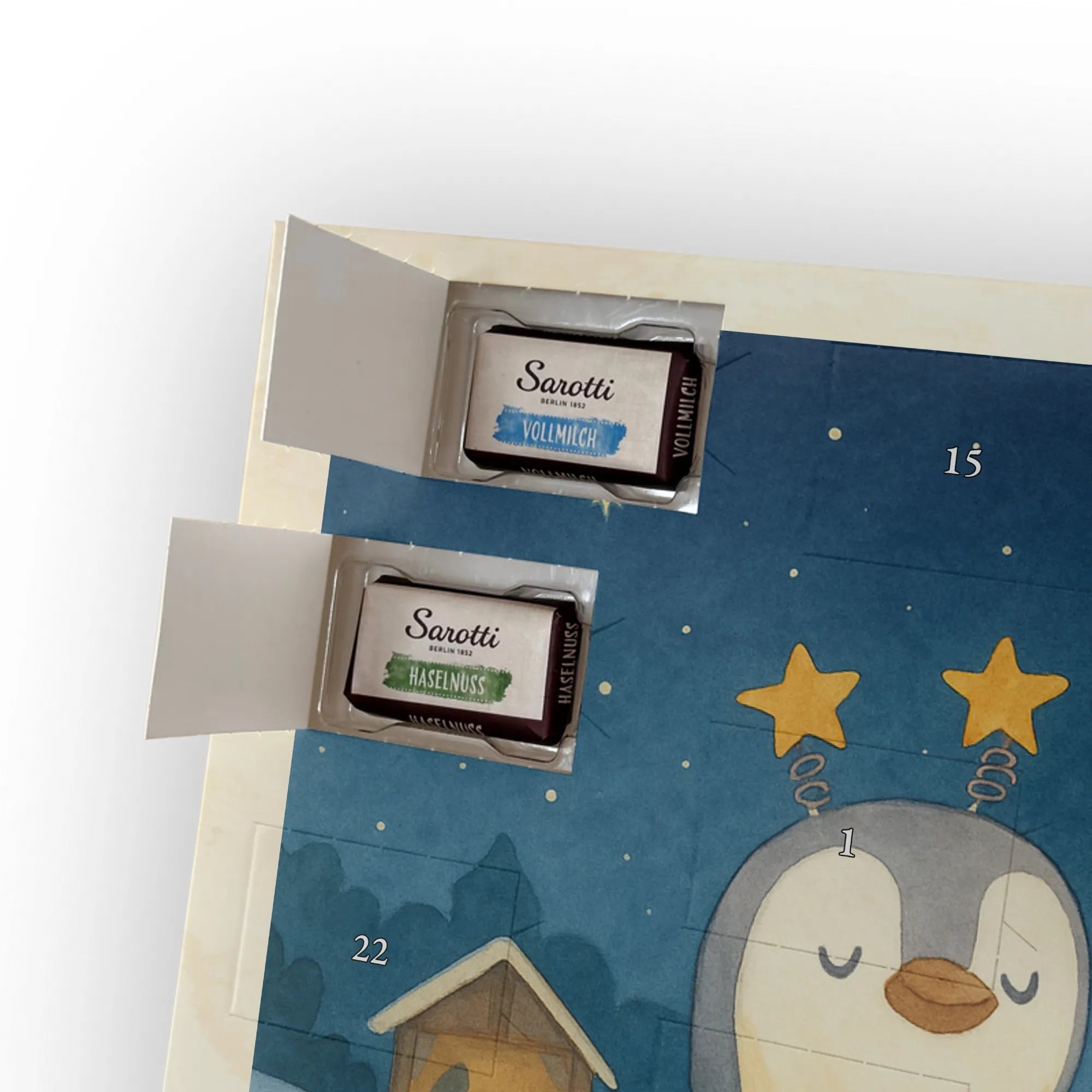 🐼 ADVENTSKALENDER SCHOKO: Liebevolle Motive, edles seidenmattes Finish.