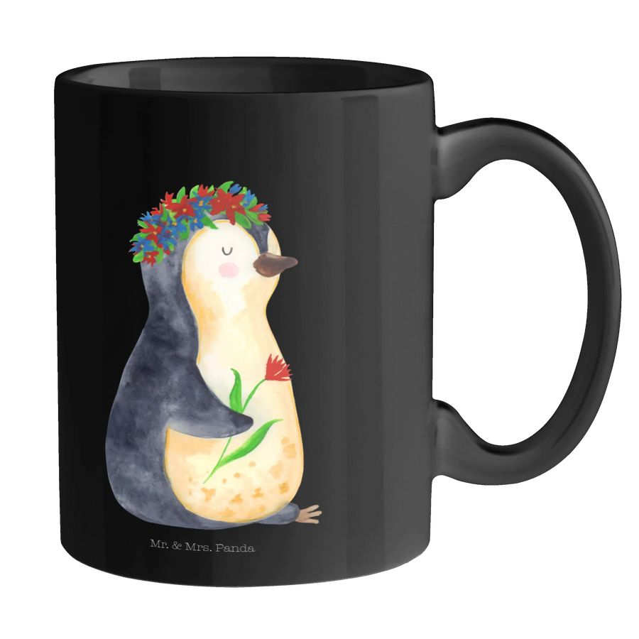 Entdecke die zauberhafte Pinguin Blumenkranz Tasse von Mr. & Mrs. Panda, die das perfekte Geschenk für alle Kaffeeliebhaber und Teetrinker ist!