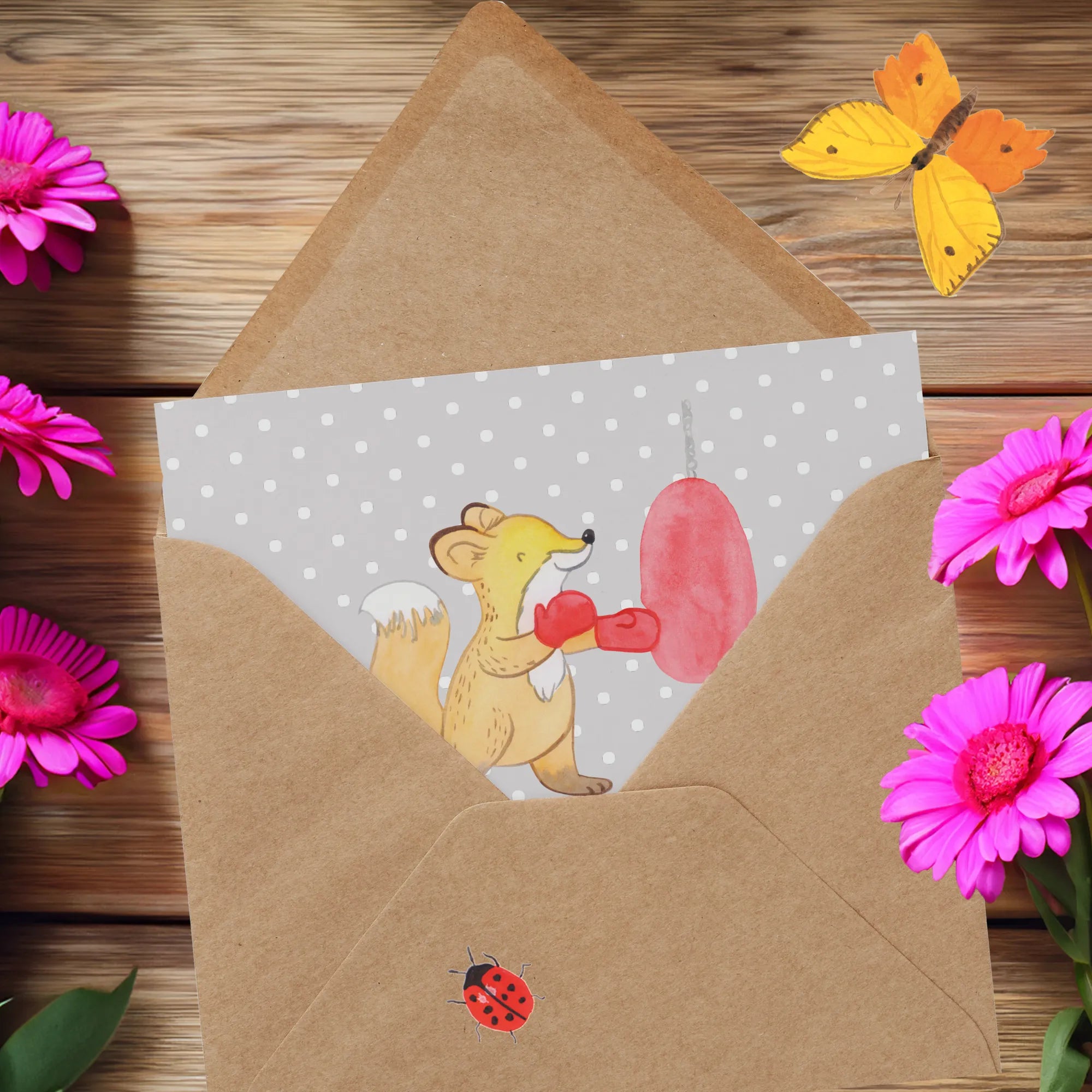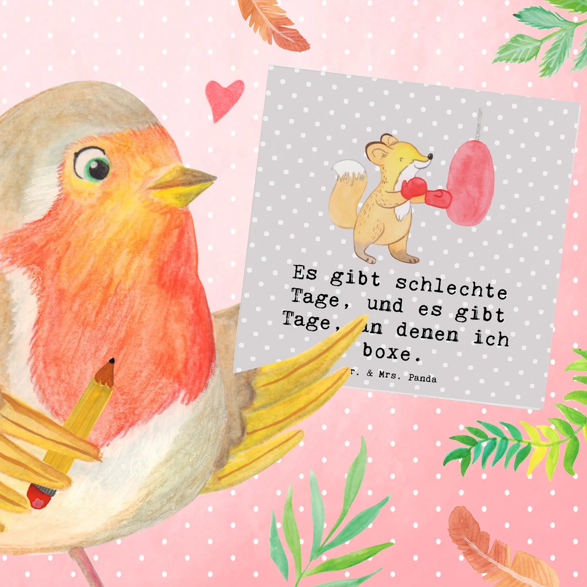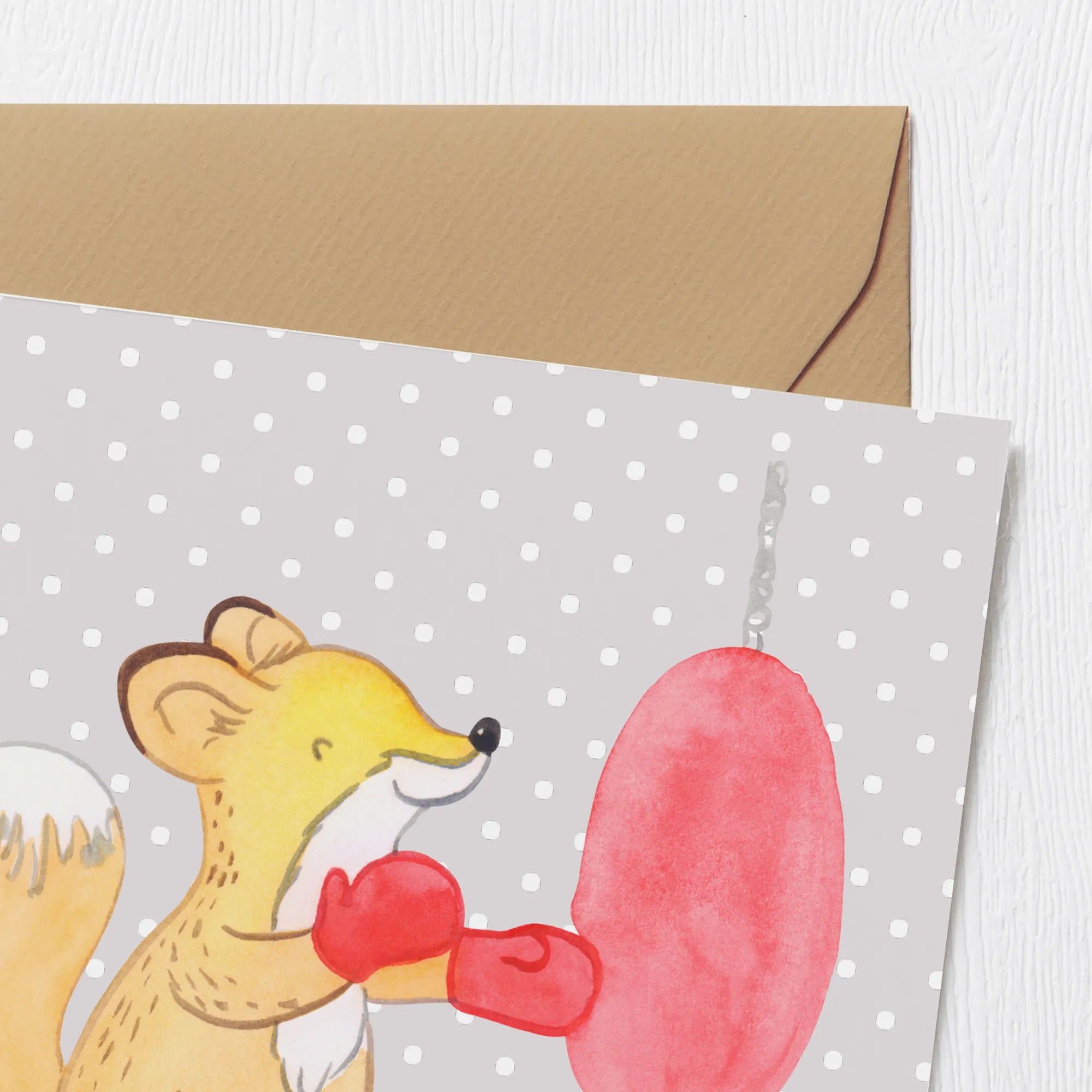 Füchse sind nicht nur die cleveren Tiere aus den Märchen; sie stehen auch für Schnelligkeit und Geschicklichkeit – genau wie Boxer im Ring. Jedes Mal, wenn jemand diese Karte öffnet, wird der Spruch "Es gibt schlechte Tage, und es gibt Tage, an denen ich boxe" an die Kraft und Entschlossenheit erinnern, die jeder Sportler braucht. Das macht die Karte zu einer idealen Wahl für Sportler, die Wert auf Motivation und Inspiration legen.