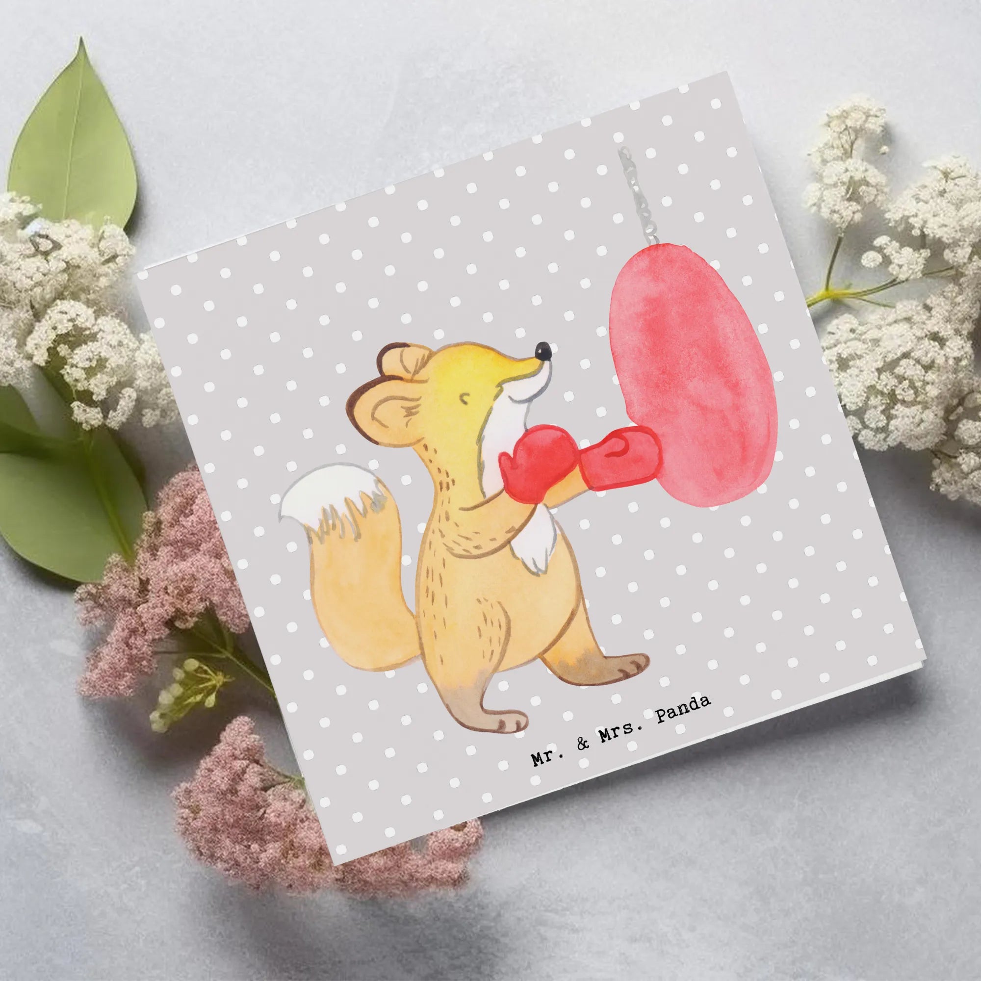 Die Deluxe Karte mit dem Motiv "Fuchs Boxen Tage" aus der Kollektion Hobby & Sport von Mr. & Mrs. Panda ist das perfekte Geschenk für alle Sportbegeisterten und Boxfans! Diese wunderschöne, quadratische Karte aus hochwertigem Karton macht jeden feierlichen Anlass noch besonderer.