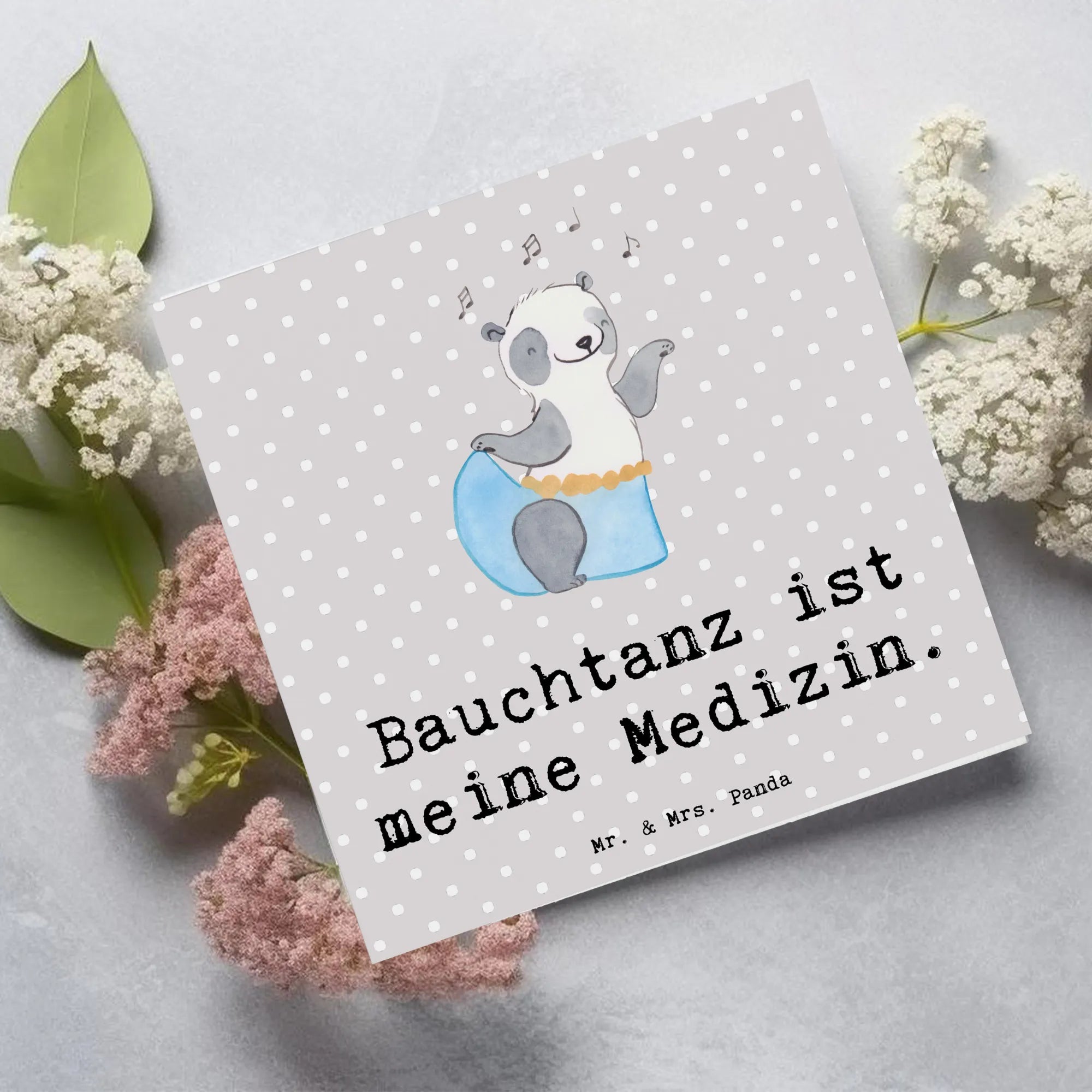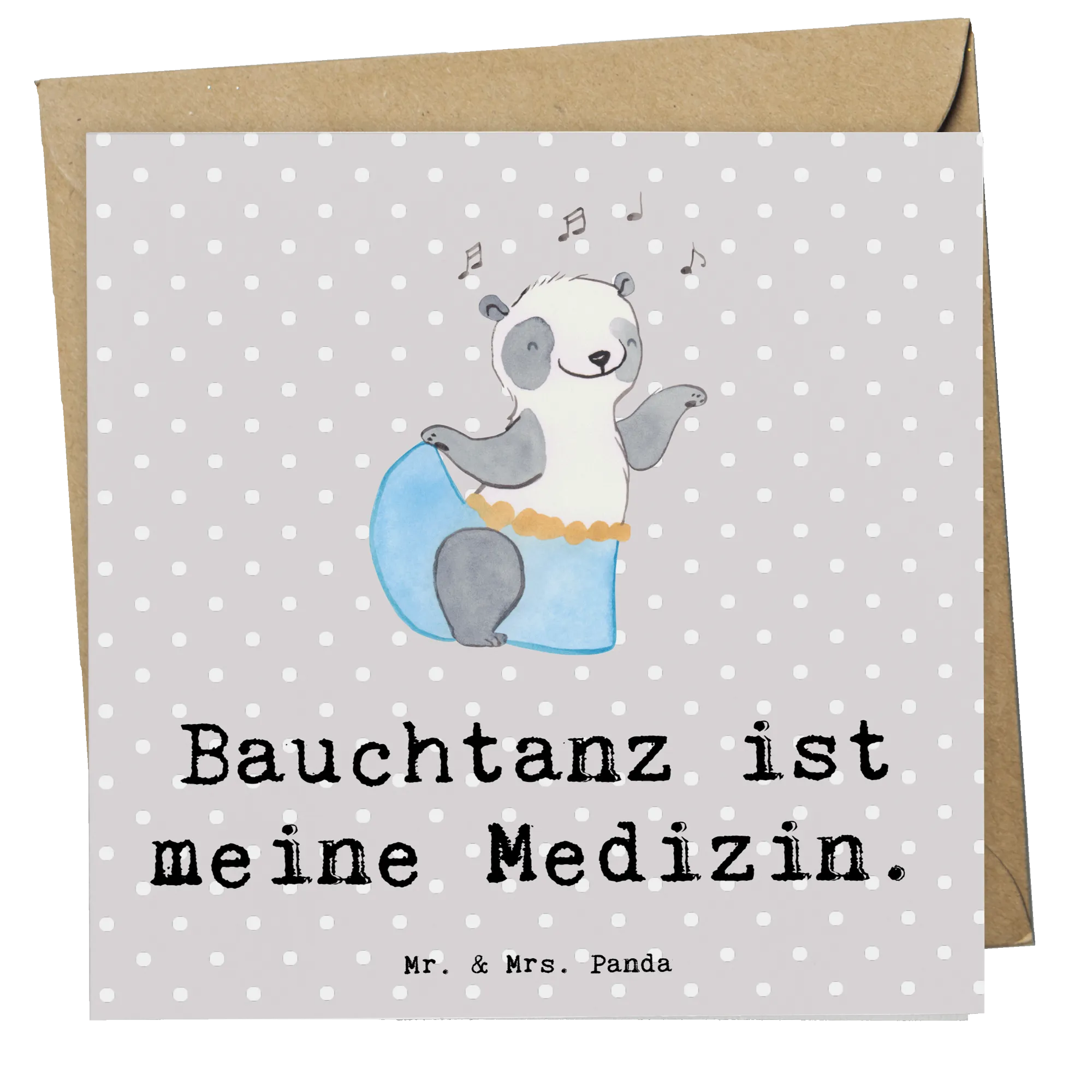 Die Deluxe Karte "Panda Bauchtanz Medizin" von Mr. & Mrs. Panda ist das perfekte Geschenk für alle, die den orientalischen Tanz lieben oder selbst als leidenschaftliche Tänzerin aktiv sind. Diese hochwertige quadratische Karte misst 140 mm x 140 mm und besteht aus edlem 300 Gramm Karton. Mit ihrer hochglänzenden Vorderseite und der matten Innenseite lädt sie geradezu zur individuellen Beschriftung ein.