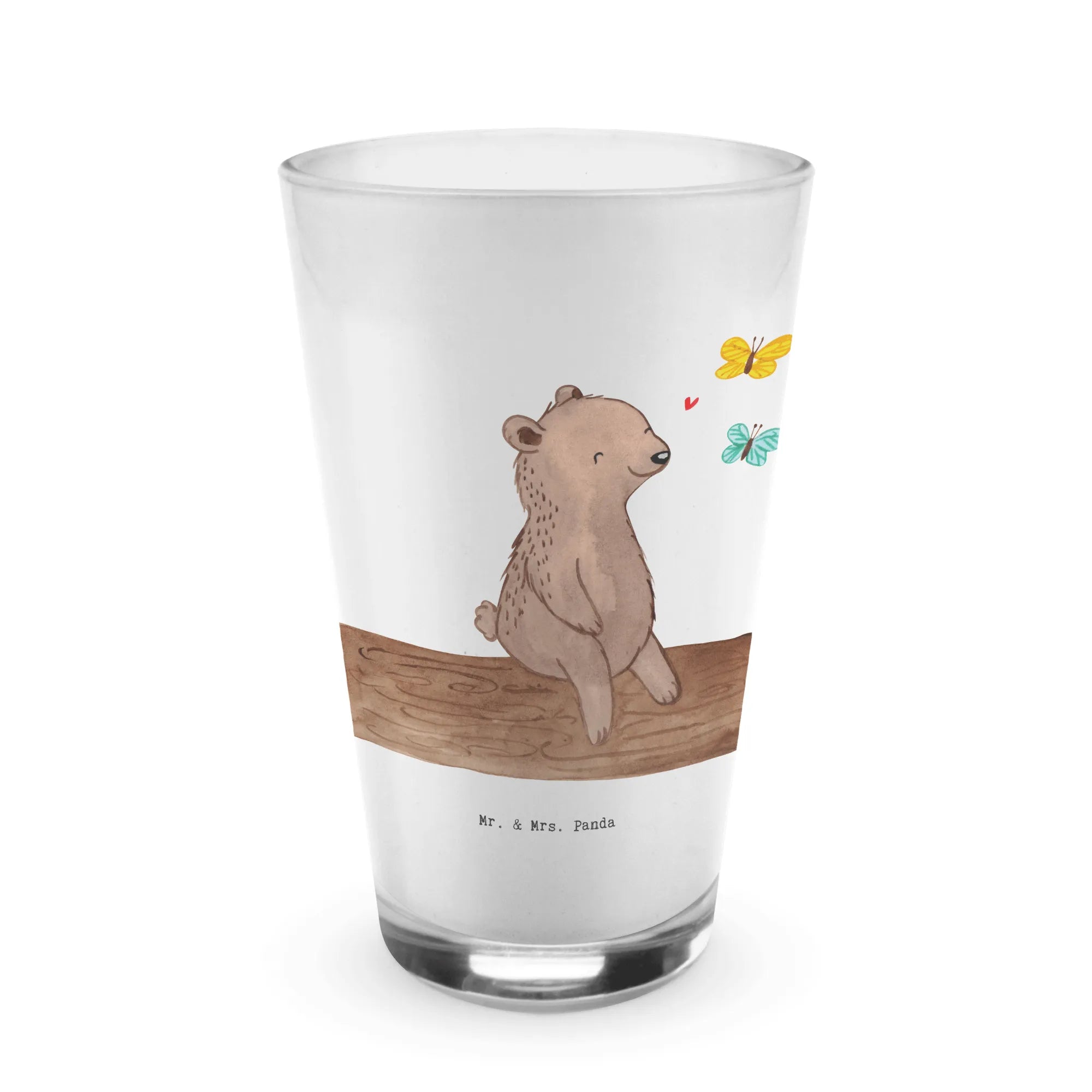 Das perfekte Trinkglas für Naturliebhaber – das Cappuccino Glas mit dem süßen Bär-Motiv von Mr. & Mrs. Panda. Ob bei einer Wanderung in den Bergen oder beim Entspannen im eigenen Garten, dieses hochwertige Premiumglas bringt die Liebe zur Natur direkt in Dein Zuhause.