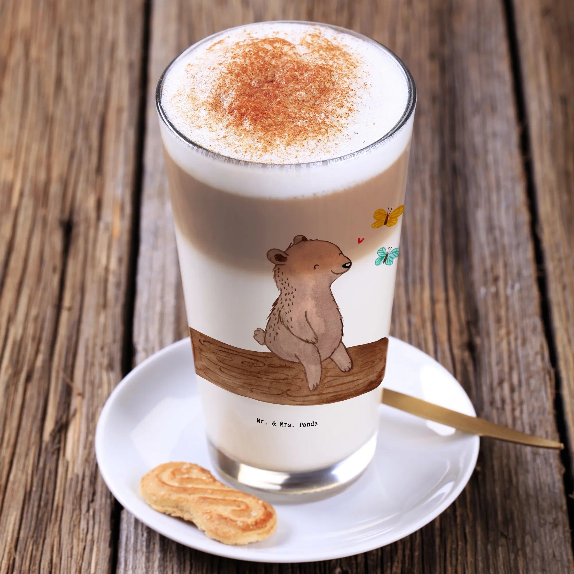 Das wunderschöne Cappuccino Glas mit dem niedlichen Bär-Motiv von Mr. & Mrs. Panda ist der perfekte Begleiter für alle Naturliebhaber und Outdoor-Fans! Wenn du gerne draußen bist, die frische Luft genießt und dabei mit einem heißen Getränk entspannen möchtest, ist dieses Glas genau das Richtige für dich.