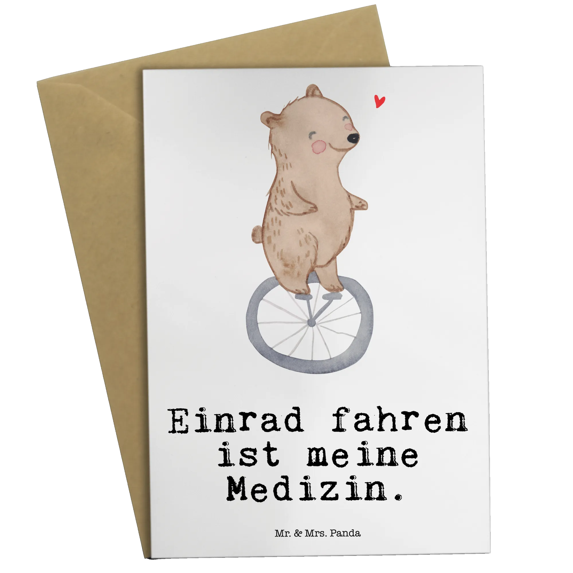 Die perfekte Grußkarte für alle Sportliebhaber und Freunde des Einradfahrens! Mit dem niedlichen Motiv des Bären, der begeistert auf seinem Einrad fährt, und dem Spruch "Einrad fahren ist meine Medizin" bringt diese Karte ein Lächeln ins Gesicht. Sie ist ideal, um deine besten Wünsche und Gedanken zu besonderen Anlässen zu übermitteln. Ob als Einladungskarte für eine Sportveranstaltung, als Glückwunschkarte zum Geburtstag eines Sportlers oder einfach nur, um Danke zu sagen – diese Grußkarte ist vielseitig einsetzbar und sorgt garantiert für Freude.