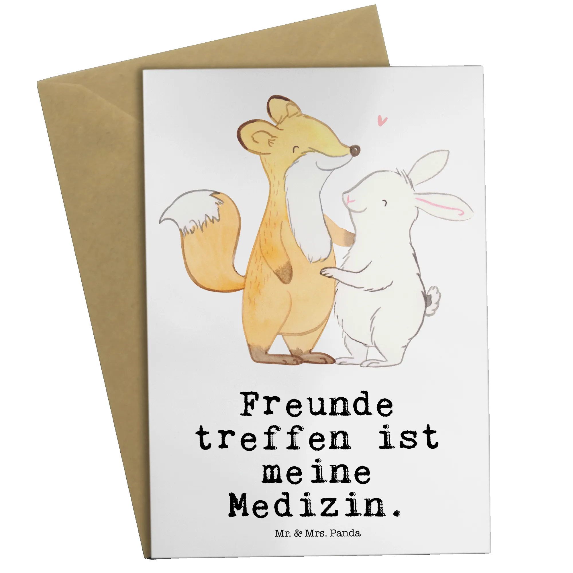 Die Grußkarte "Fuchs Hase Freunde treffen Medizin" aus der Kollektion Hobby & Sport von Mr. & Mrs. Panda ist das perfekte Geschenk für alle, die ihre Liebe zu Freunden und Hobbys feiern möchten. Diese herrliche und einzigartige Grußkarte ist in einem hübschen Hochkant-Format (148 mm x 105 mm) gehalten und besteht aus hochwertigem, mattem Karton.