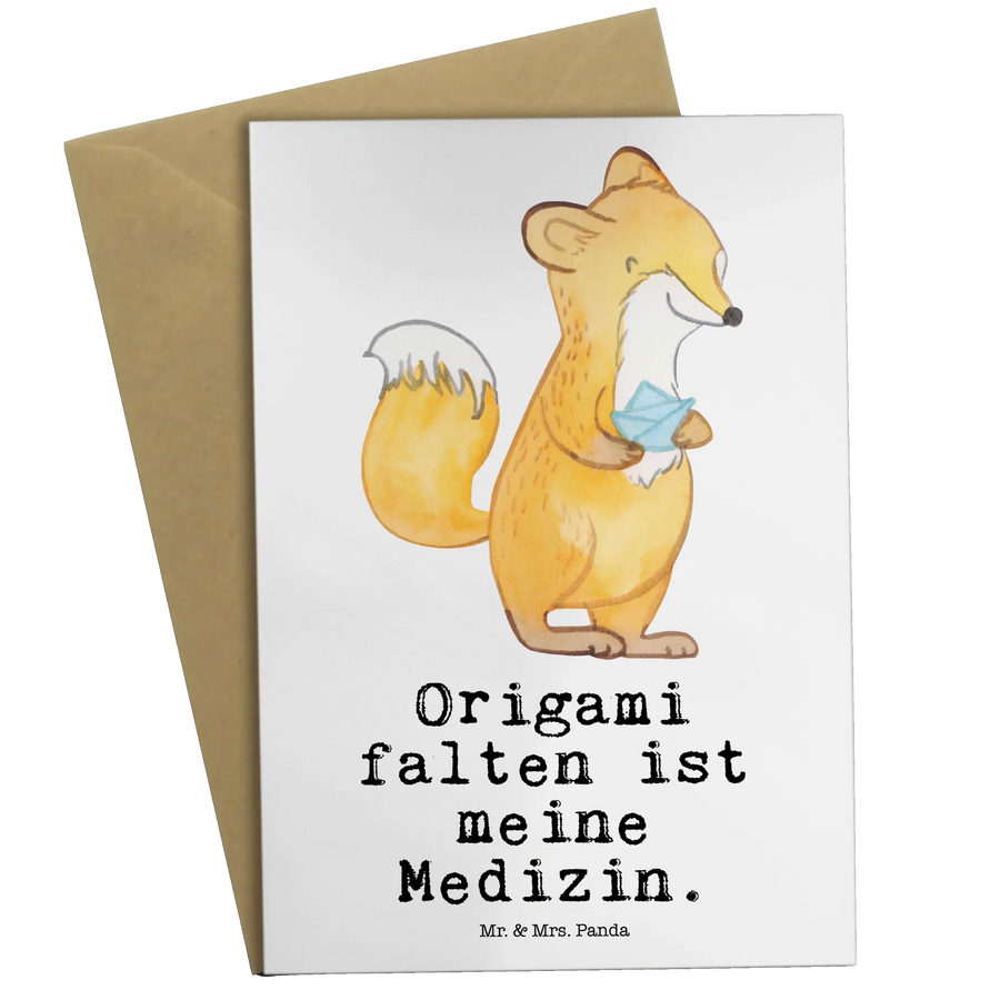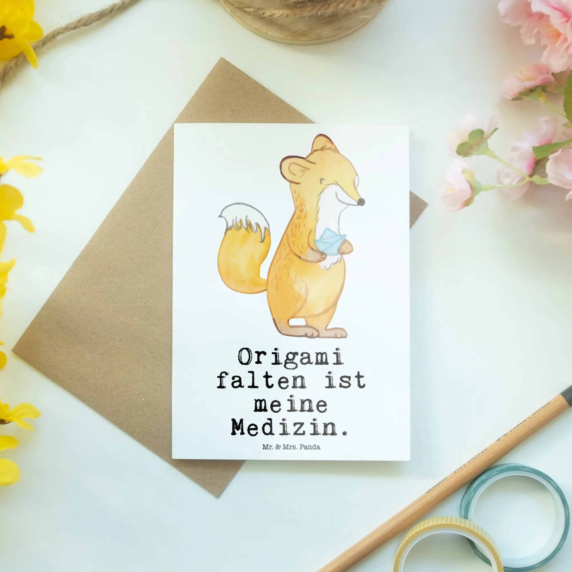 Die Grußkarte mit dem bezaubernden Fuchs Origami Medizin von Mr. & Mrs. Panda ist das perfekte Geschenk für alle, die eine kleine Freude bereiten möchten. Mit einem herzerwärmenden Motiv und dem liebevollen Spruch 'Origami falten ist meine Medizin' ist diese Karte mehr als nur eine Grußkarte – sie ist ein Ausdruck von Freude und Kreativität!