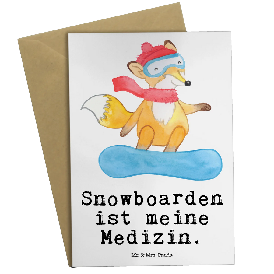 Entdecke unsere bezaubernde Grußkarte "Fuchs Snowboarden Medizin" aus der Kollektion Hobby & Sport von Mr. & Mrs. Panda!
