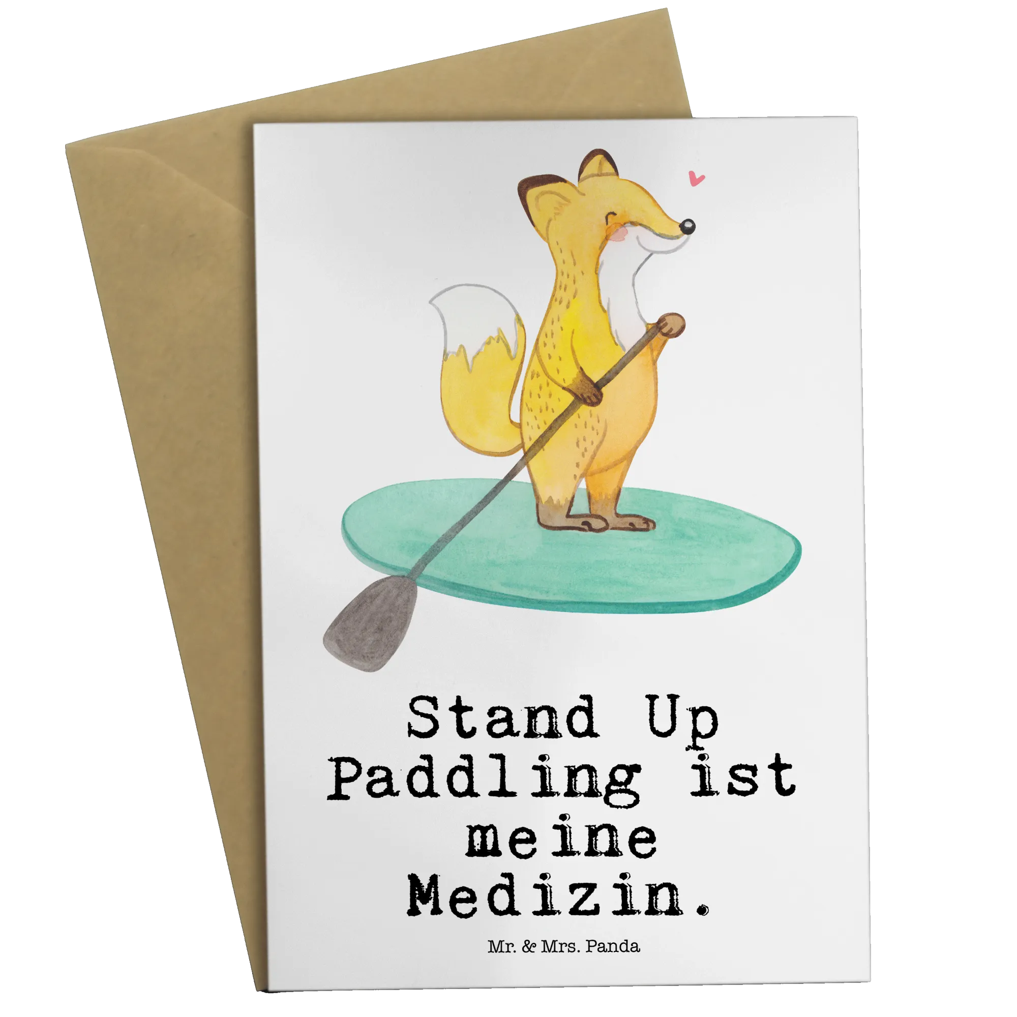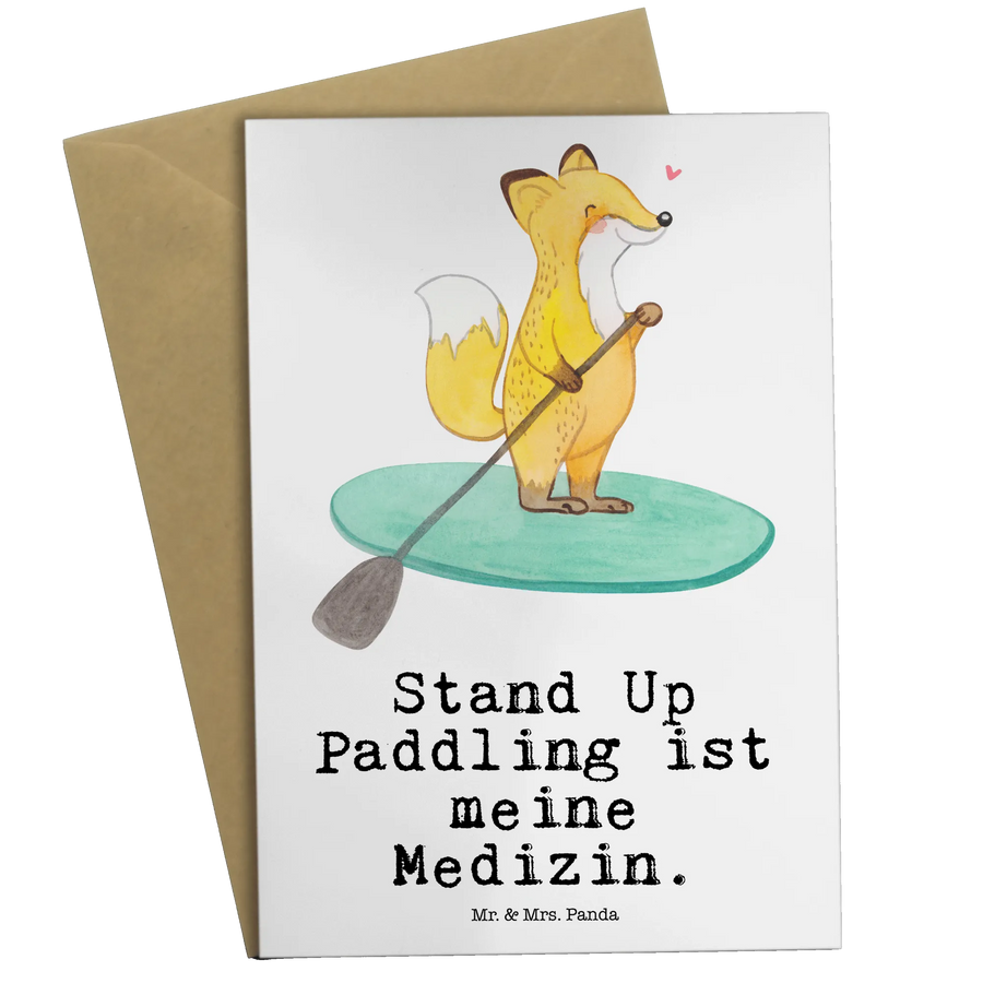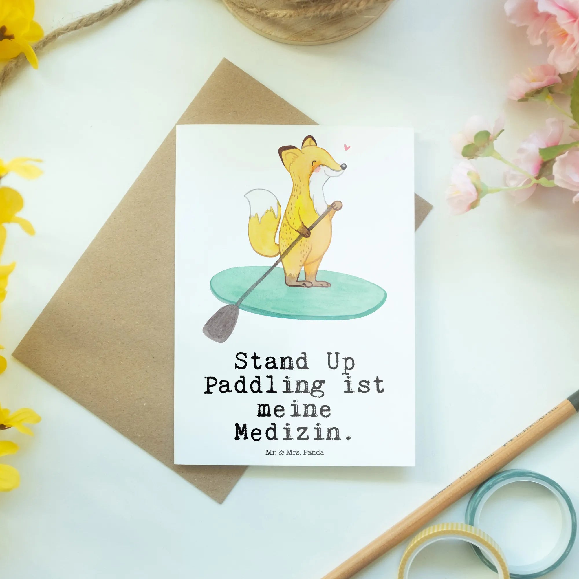 Wenn du nach dem perfekten Geschenk für einen begeisterten Stand Up Paddler suchst, dann ist die Grußkarte "Fuchs Stand Up Paddling ist meine Medizin" aus der liebevollen Hobby & Sport Kollektion von Mr. & Mrs. Panda genau das Richtige! Diese wunderschöne Klappkarte zeigt einen niedlichen Fuchs, der fröhlich auf seinem Stand Up Paddle Board steht und die frische Luft genießt. Mit dem inspirierenden Spruch "Stand Up Paddling ist meine Medizin" ermutigt die Karte deinen Freund oder deine Freundin, die Freude am Sport auch in schwierigen Zeiten auszuleben. Ob zum Geburtstag, als Dankeschön oder einfach nur so zwischendurch – mit dieser Karte gelingt dir eine individuelle Botschaft, die von Herzen kommt.