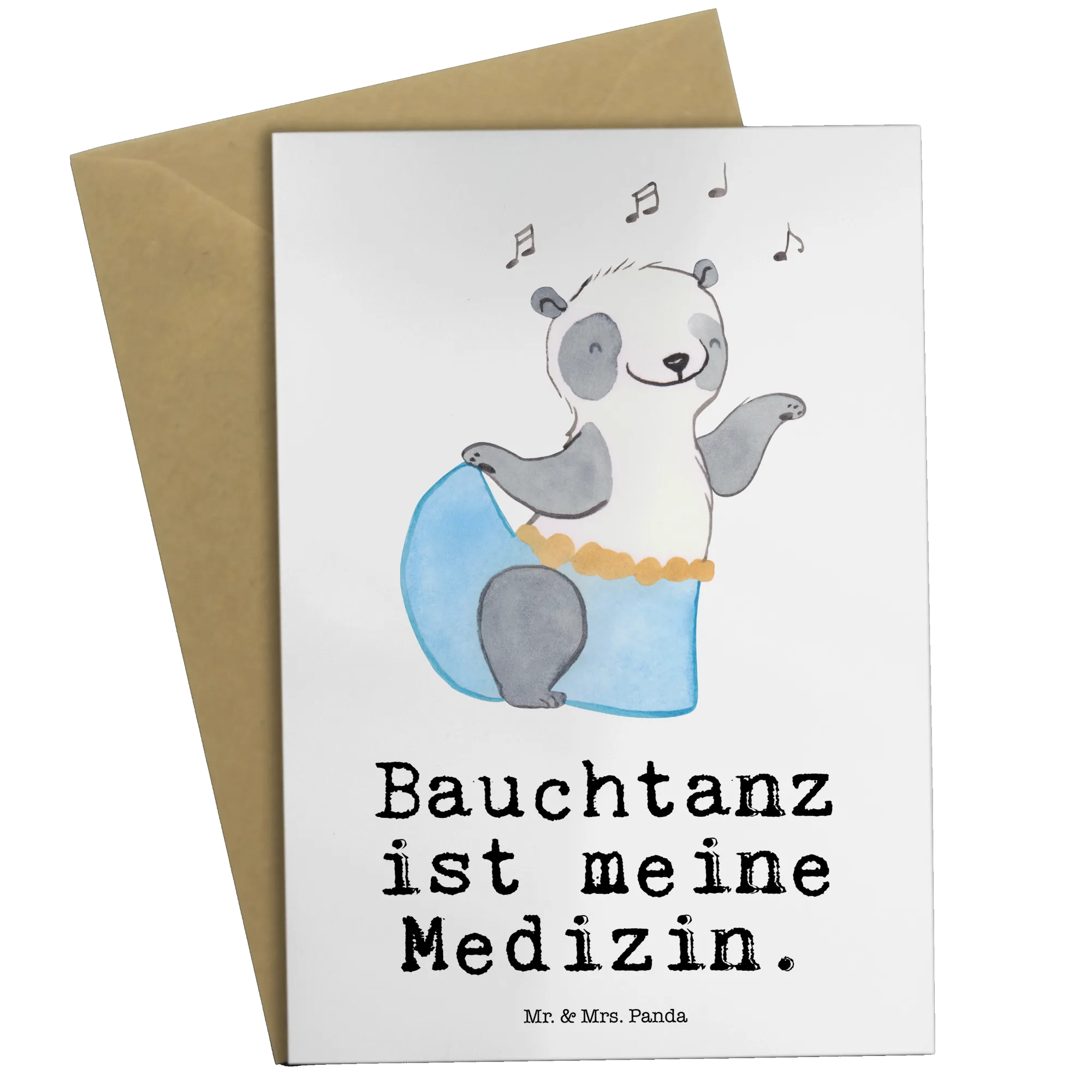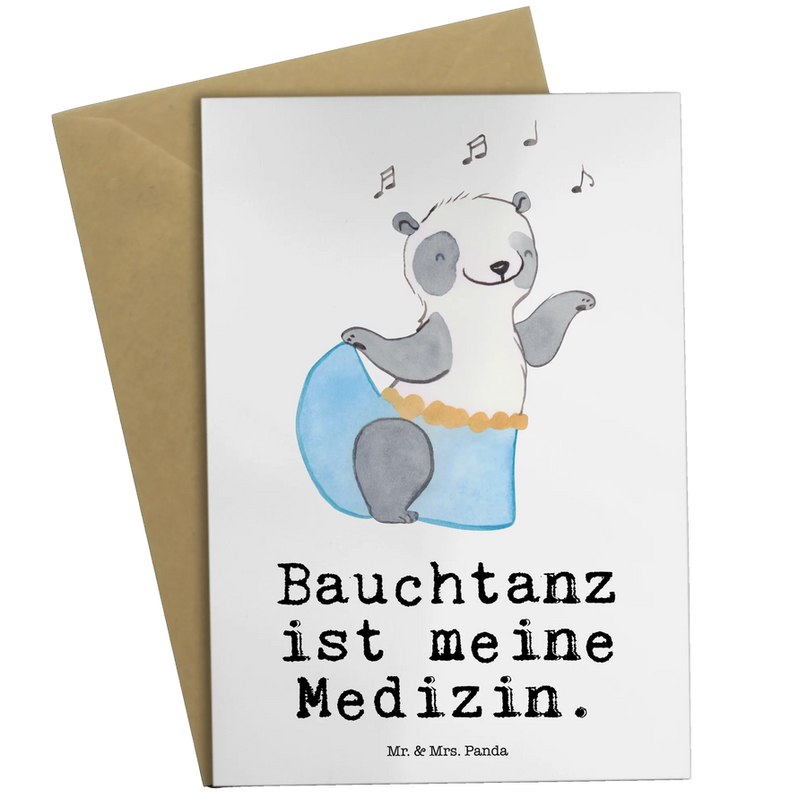 Verschenke mit der einzigartigen Grußkarte "Bauchtanz ist meine Medizin" von Mr. & Mrs. Panda ein Stück Freude und Leidenschaft! Diese liebevoll gestaltete Karte zeigt einen niedlichen Panda, der fröhlich in einem bunten Bauchtanzrock tanzt. Perfekt für alle, die den orientalischen Tanz lieben oder einfach nur Freude am Tanzen haben. Die Karte misst 148 mm x 105 mm und besticht durch ihre hochglänzend veredelte Vorderseite und matte Innenseite. Die blanko Innenseite ermöglicht es dir, deine persönlichen Glückwünsche oder Dankeskarten zu verewigen.