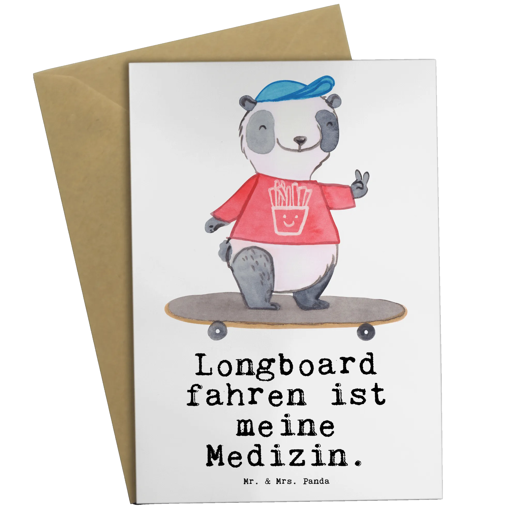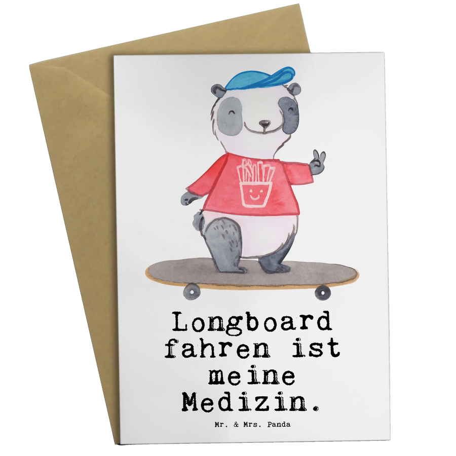 Entdecke die einzigartige Grußkarte von Mr. & Mrs. Panda mit dem süßen Motiv "Panda Longboard fahren Medizin"! Diese Karte ist nicht nur perfekt für passionierte Skater, sondern auch ein tolles Geschenk für jeden Longboard-Fan. Mit dem witzigen Spruch "Longboard fahren ist meine Medizin" bringt diese Grußkarte ein Lächeln auf die Gesichter aller, die den Nervenkitzel und die Freiheit beim Skaten lieben.