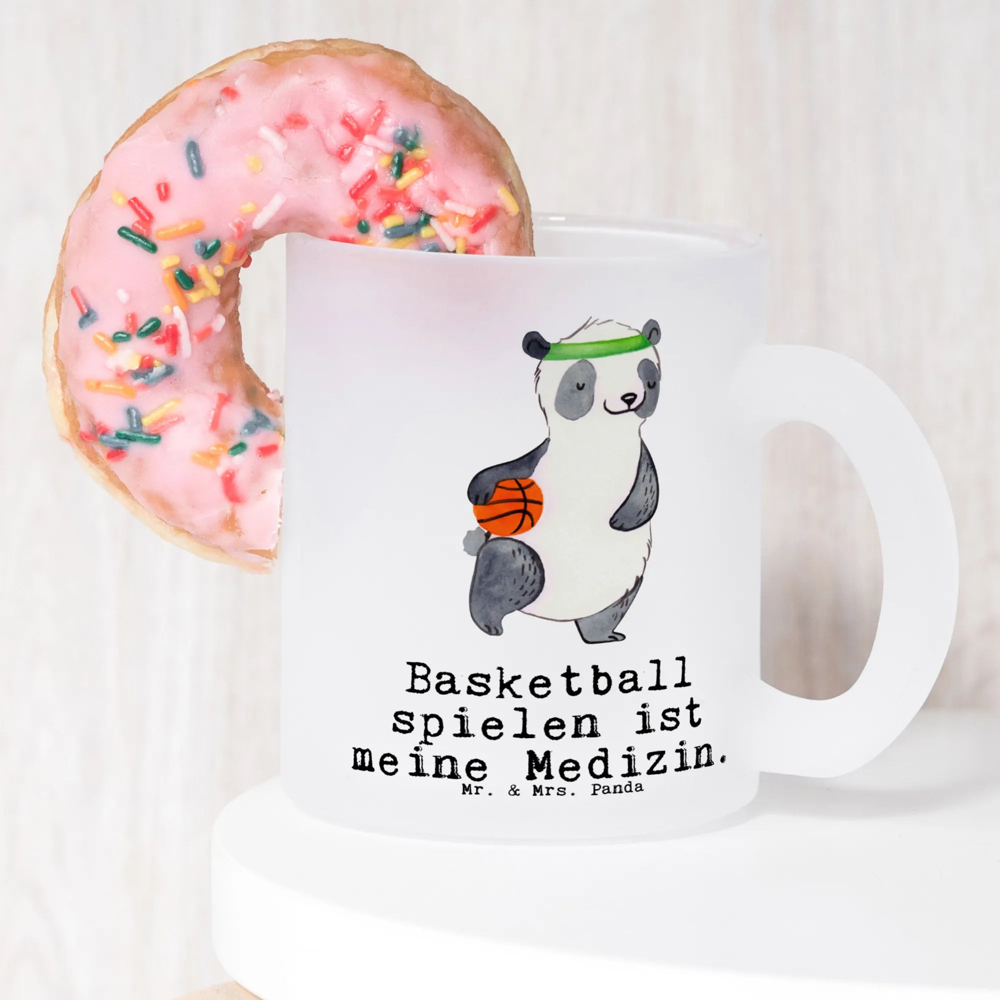 Entdecke die Teetasse Panda Basketball Medizin von Mr. & Mrs. Panda – das perfekte Geschenk für alle Basketball-Liebhaber!