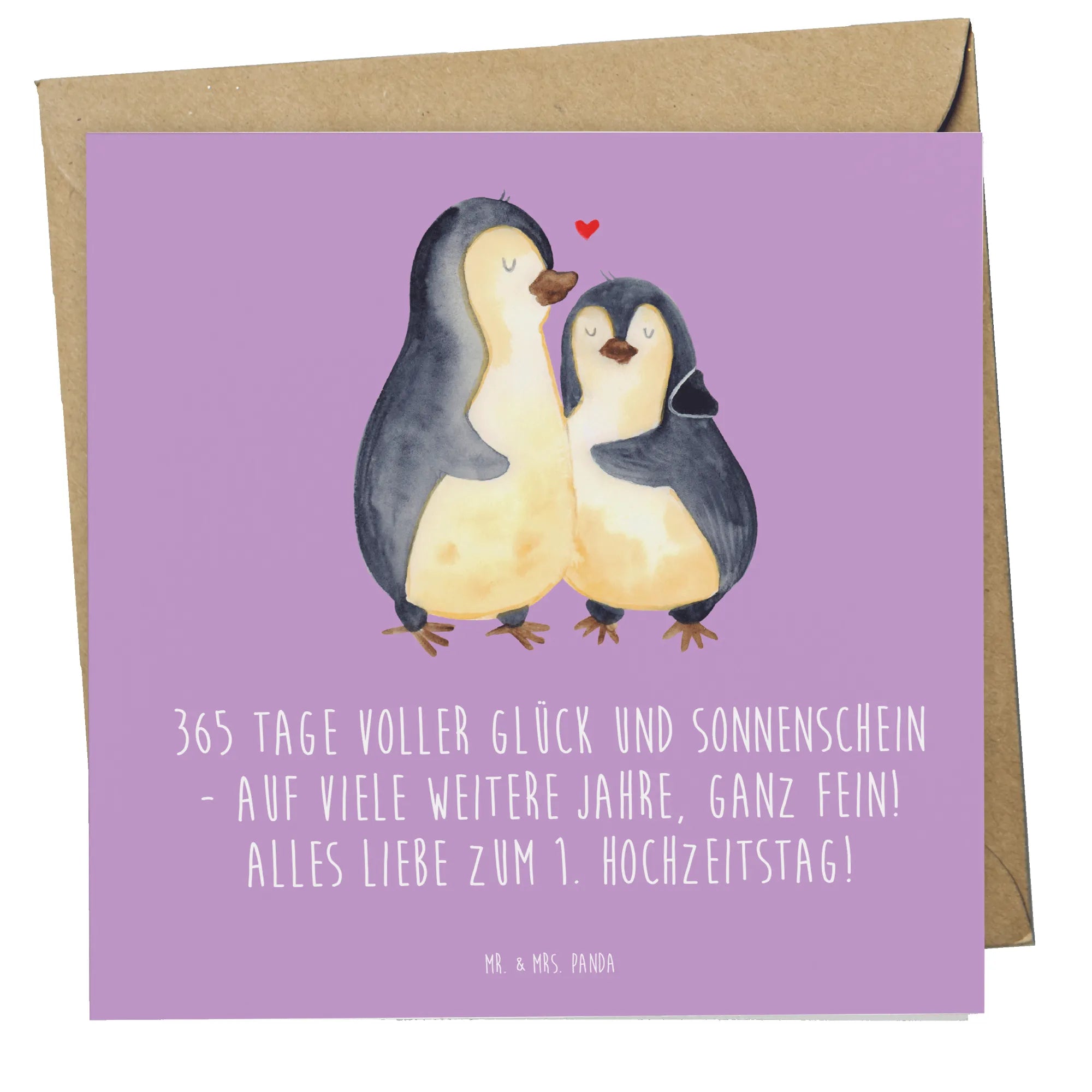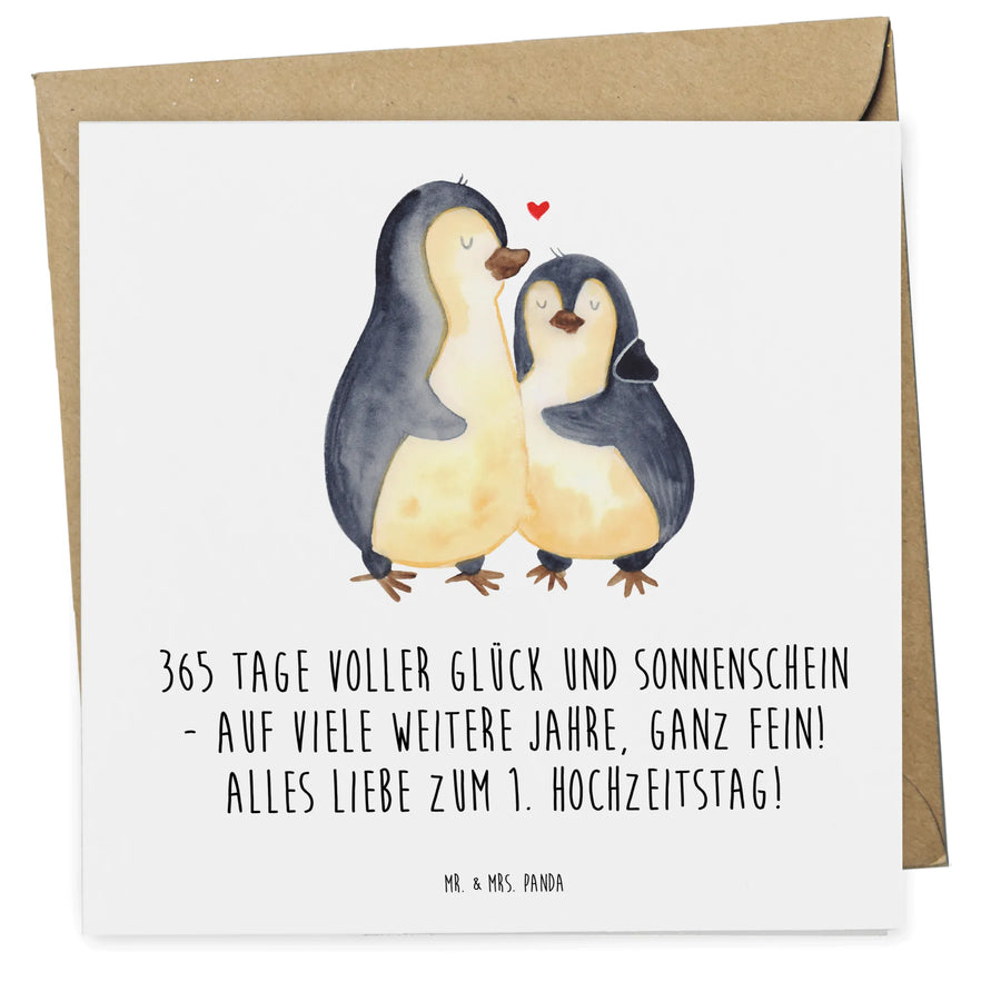 Was diese Karte besonders einzigartig macht, ist nicht nur das herzerwärmende Design, sondern auch die Liebe, die in jedem Detail steckt. Sie eignet sich nicht nur für den ersten Hochzeitstag, sondern auch für andere feierliche Anlässe wie Jubiläen, Verabschiedungen oder Geburtstage. Verschenke einen Teil deiner Liebe und mache einem Paar eine Freude mit dieser wundervollen Karte, die sicherlich strahlende Augen hervorbringen wird. Mr. & Mrs. Panda stehen für Qualität und Einzigartigkeit, und unsere Produkte sind das perfekte Beispiel dafür. Lass diese Karte zu einem Teil der unvergesslichen Erinnerungen des Paares werden und feiere die Liebe in ihrer schönsten Form.
