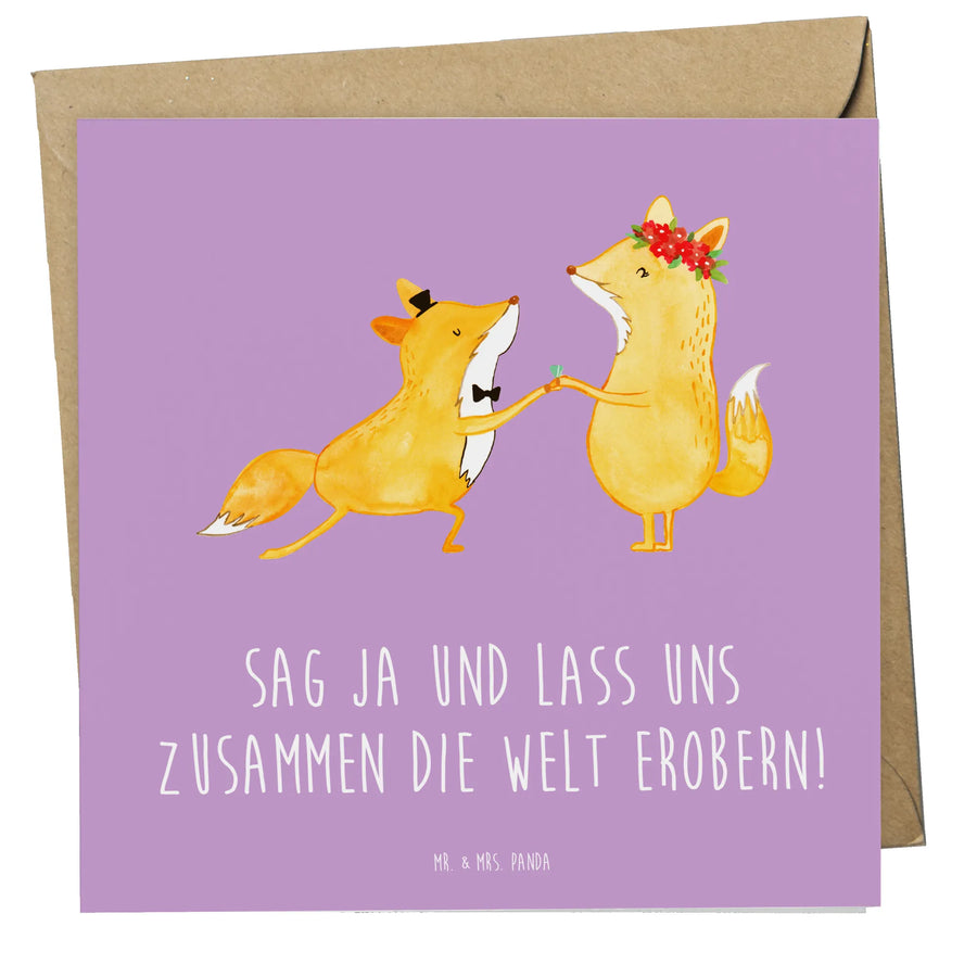 Die Deluxe Karte mit dem Motiv 'Heiratsantrag' aus der besonderen Kollektion Hochzeit von Mr. & Mrs. Panda ist das perfekte Geschenk für alle, die den schönsten Tag im Leben feiern möchten. Diese wunderschöne hochwertige quadratische Karte ist bedruckt mit dem einladenden Spruch 'Sag Ja und lass uns zusammen die Welt erobern!'.
