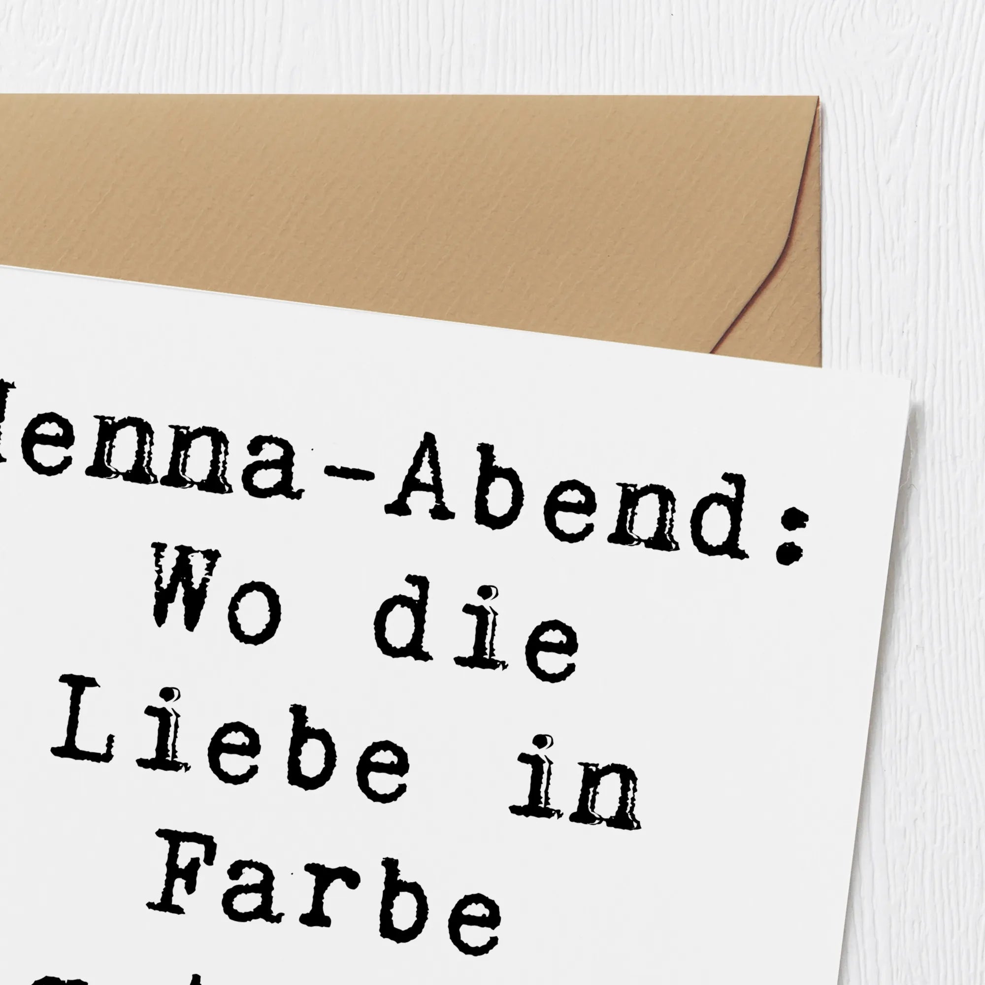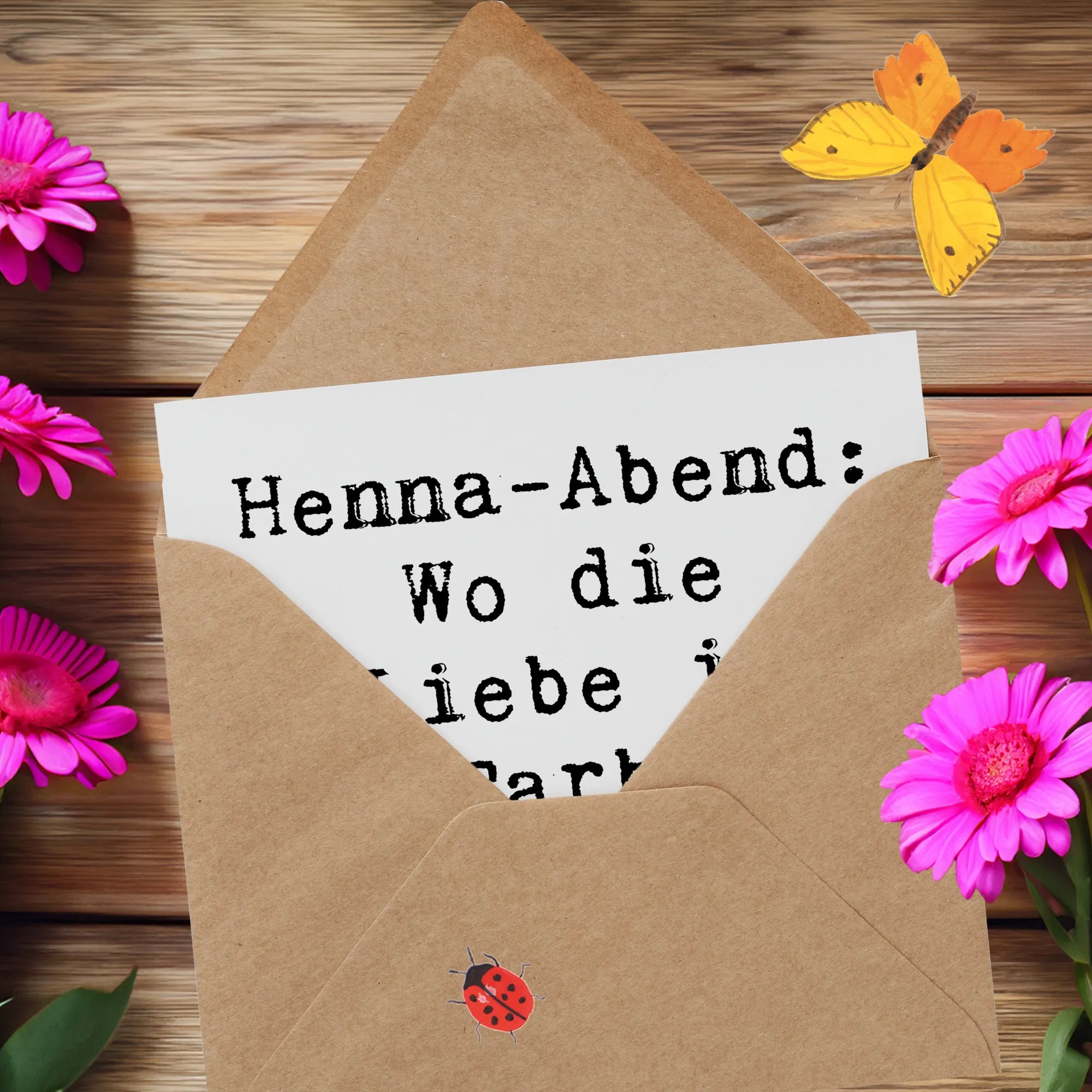 Die Kombination aus dem liebevoll gestalteten Spruch "Henna-Abend: Wo die Liebe in Farbe getaucht wird!" und der hochglänzend veredelten Vorderseite macht diese Karte zu einem echten Hingucker. Mit einer blanko Innenseite hast du genügend Platz für deine persönlichen Nachrichten. Ob du die Karte zur Verlobungsfeier, zur Hochzeit oder einfach nur als kleines Zeichen der Wertschätzung verschickst, sie wird mit Sicherheit für Freude sorgen.