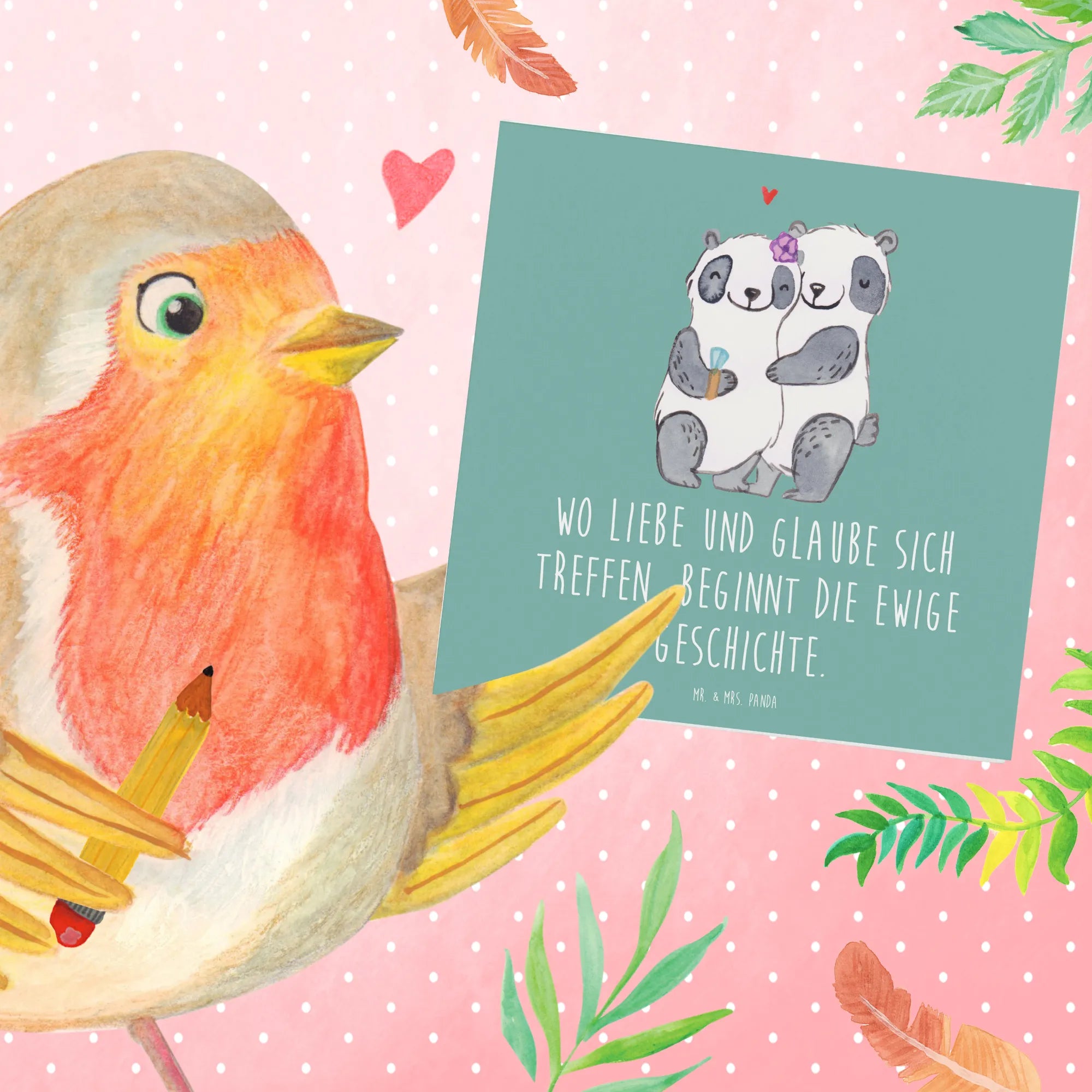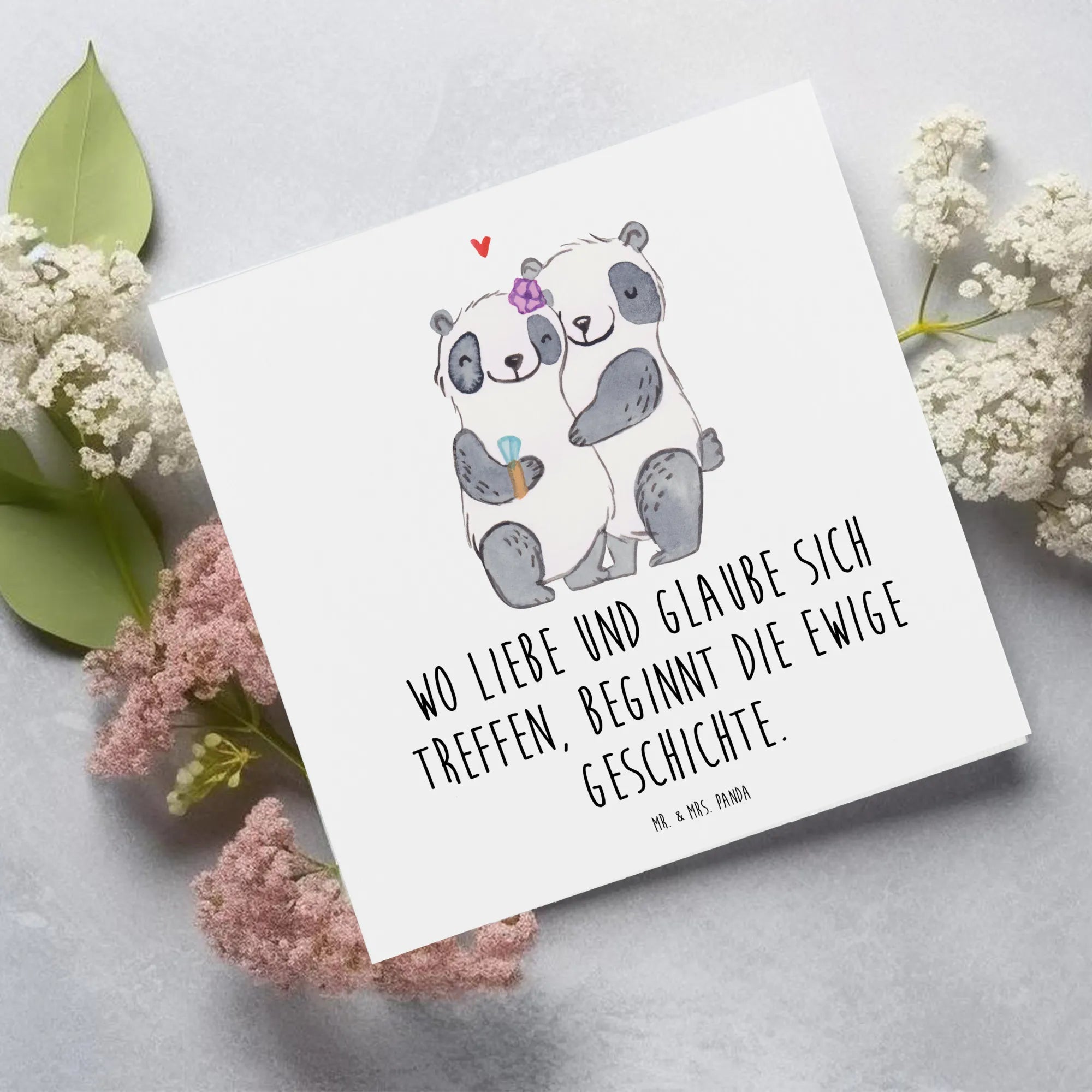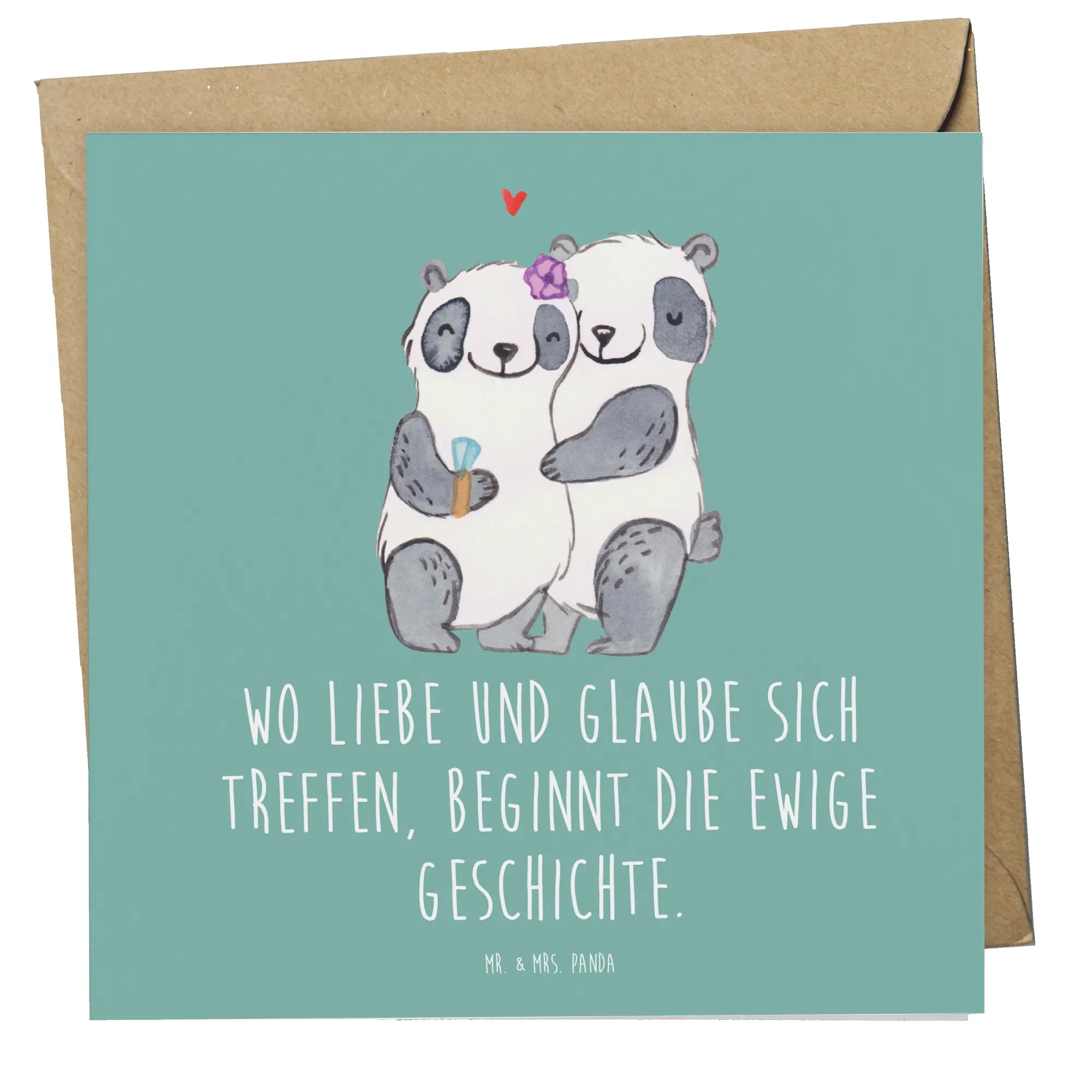 Die Deluxe Karte zur Kirchlichen Trauung von Mr. & Mrs. Panda ist das perfekte Geschenk für Paare, die ihren besonderen Tag gebührend feiern möchten! Mit dem bezaubernden Spruch 'Wo Liebe und Glaube sich treffen, beginnt die ewige Geschichte' verleiht unsere Karte jedem Hochzeitsglückwunsch einen romantischen und persönlichen Touch. Egal, ob Du sie als Hochzeitskarte, Glückwunschkarte oder Einladungskarte verwendest, sie bringt Freude und warmherzige Glückwünsche für das Brautpaar.