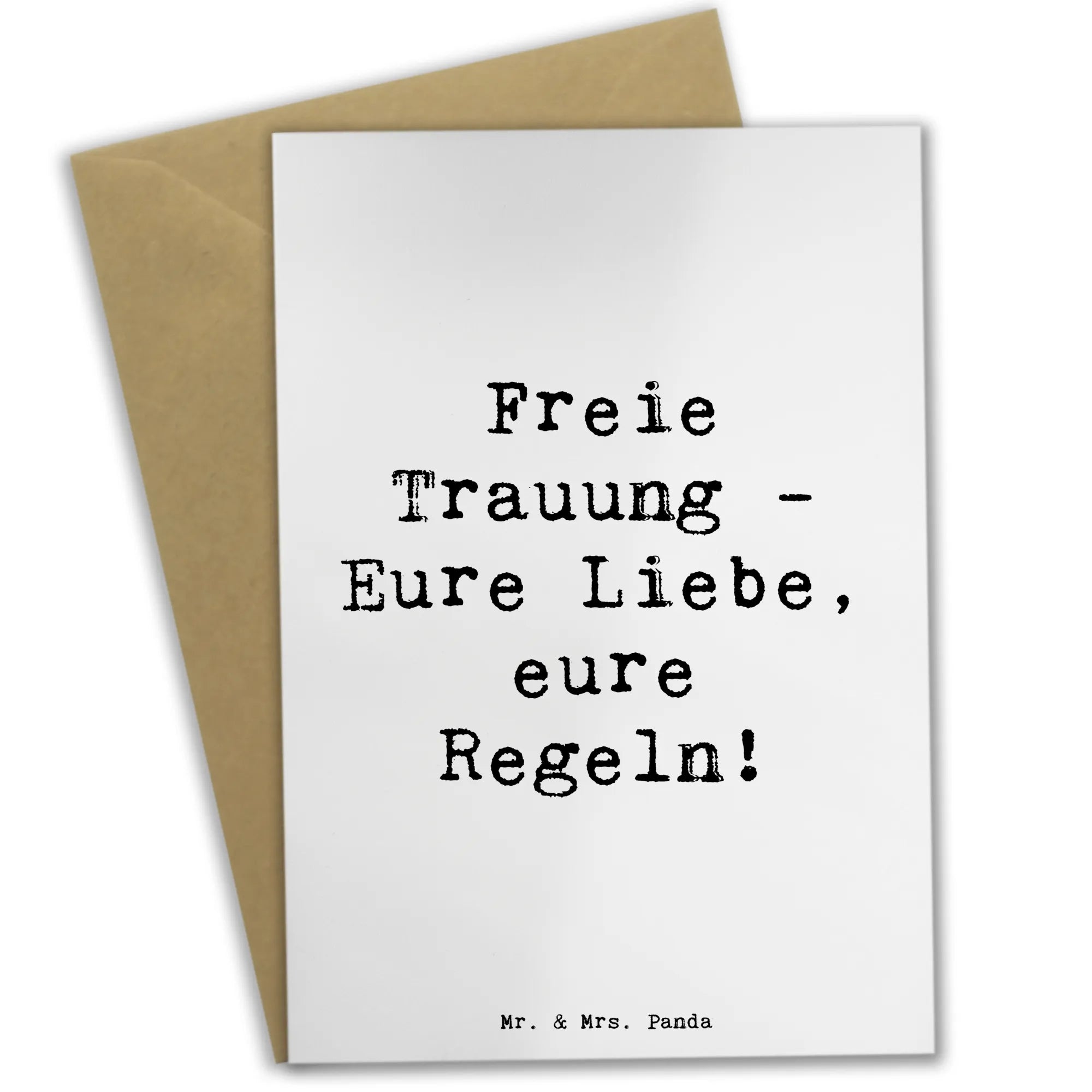 Die Grußkarte „Freie Trauung - Eure Liebe, eure Regeln!“ aus der Hochzeitskollektion von Mr. & Mrs. Panda ist das perfekte Geschenk für Paare, die ihre Liebe an einem besonderen Tag zelebrieren möchten. Egal, ob du eine Einladungskarte für eine freie Trauung, eine Glückwunschkarte zur Hochzeit oder einfach nur eine herzliche Botschaft an das Brautpaar senden möchtest, diese Karte ist ein Must-Have!