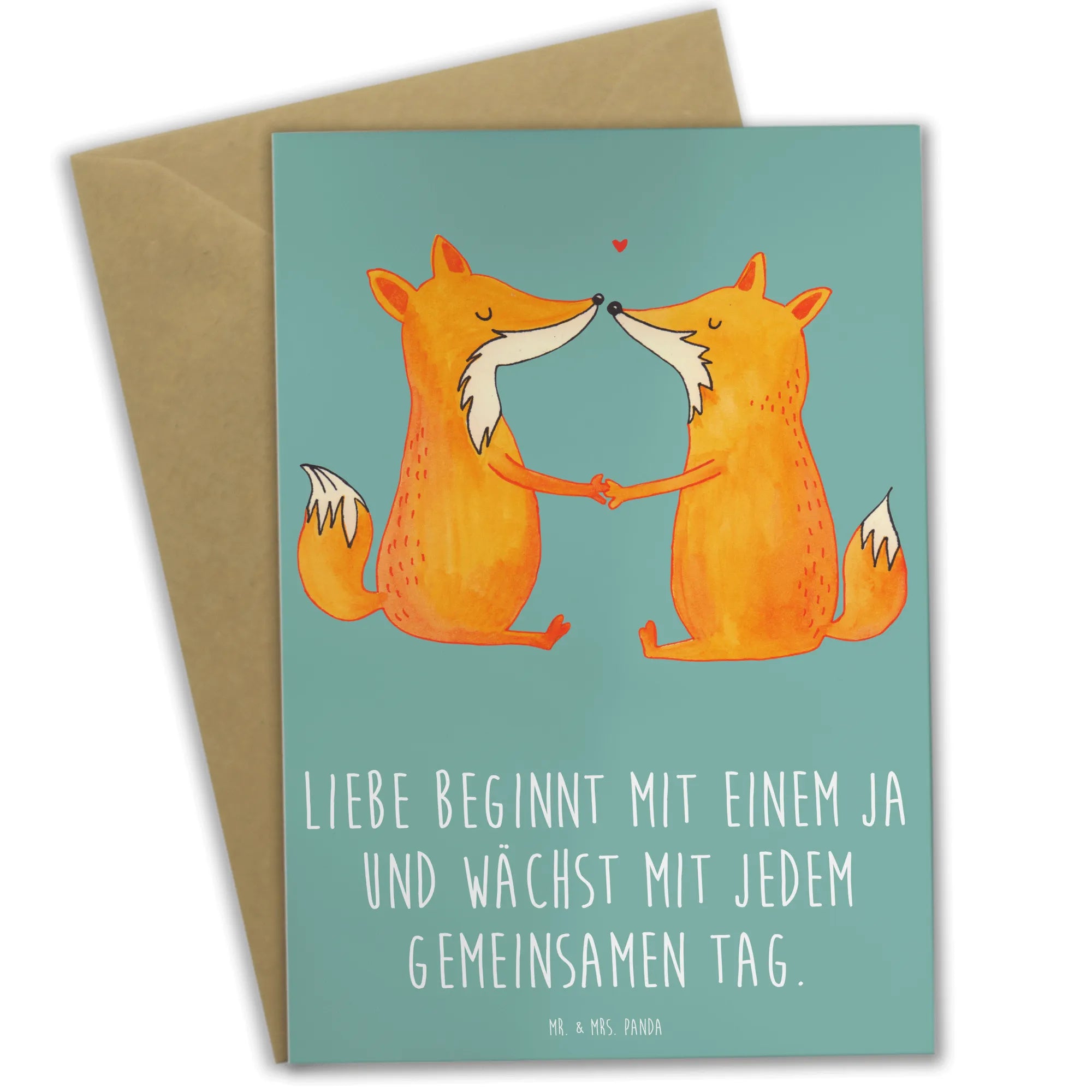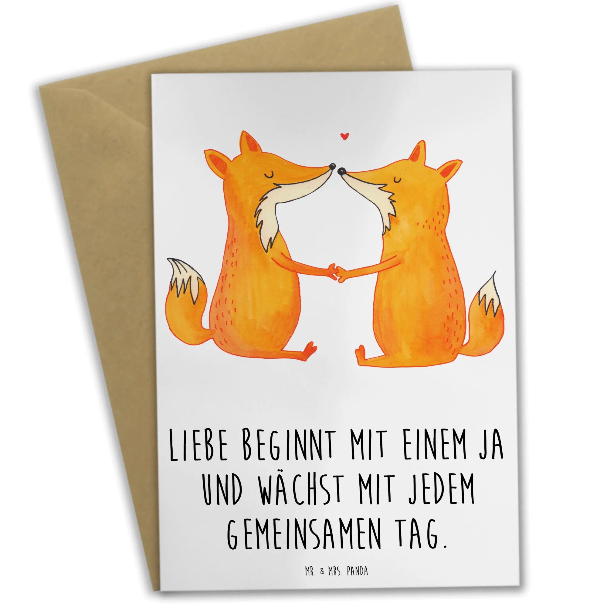 Entdecke die perfekte Grußkarte zur Hochzeit aus der zauberhaften Hochzeit Kollektion von Mr. & Mrs. Panda! Egal, ob zur Einladung, als Glückwunschkarte oder einfach um deine besten Wünsche für den neuen Lebensabschnitt zu übermitteln - diese Karte ist ein wahrhaftes Schmuckstück. Die Vorderseite ziert der liebevolle Spruch: 'Liebe beginnt mit einem Ja und wächst mit jedem gemeinsamen Tag.' Dieser Satz fängt das ganze Gefühl der Hochzeit ein und wird sowohl das Brautpaar als auch die Gäste berühren.
