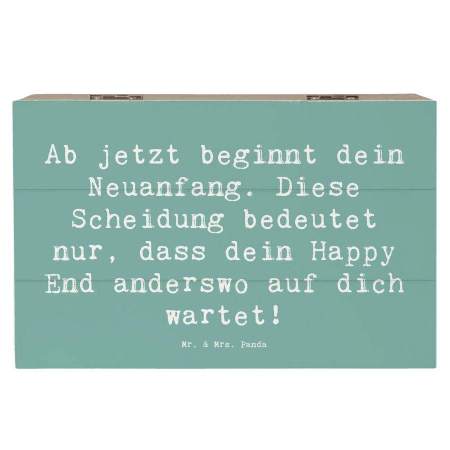 Entdecke die wunderschöne Holzkiste von Mr. & Mrs. Panda, die perfekt für all jene besonderen Momente ist, die du nie vergessen möchtest. Diese Erinnerungskiste mit dem aufmerksamen Spruch "Ab jetzt beginnt dein Neuanfang. Diese Scheidung bedeutet nur, dass dein Happy End anderswo auf dich wartet!" ist nicht nur ein Blickfang, sondern auch eine Quelle der Inspiration für jeden, der einen Neuanfang wagt.