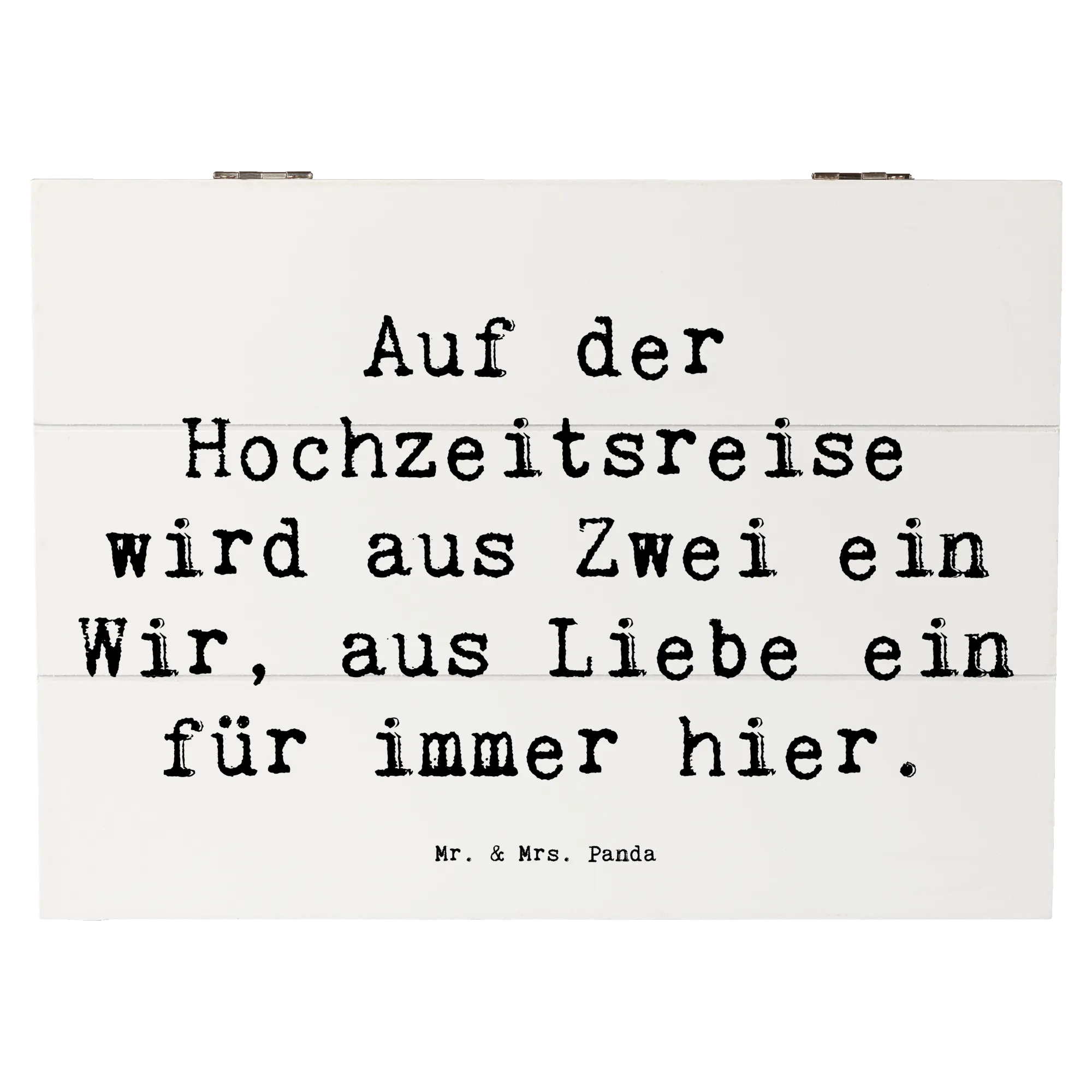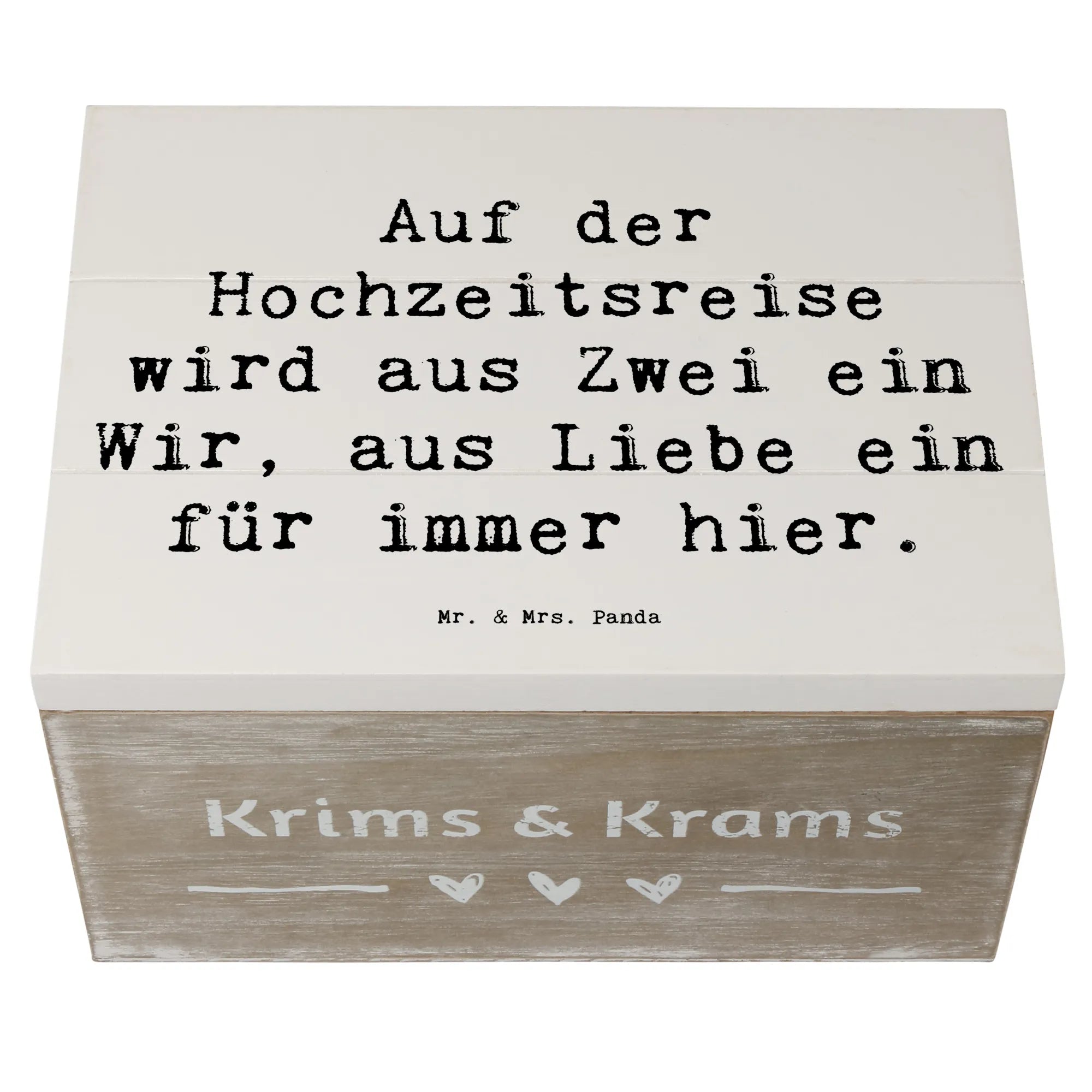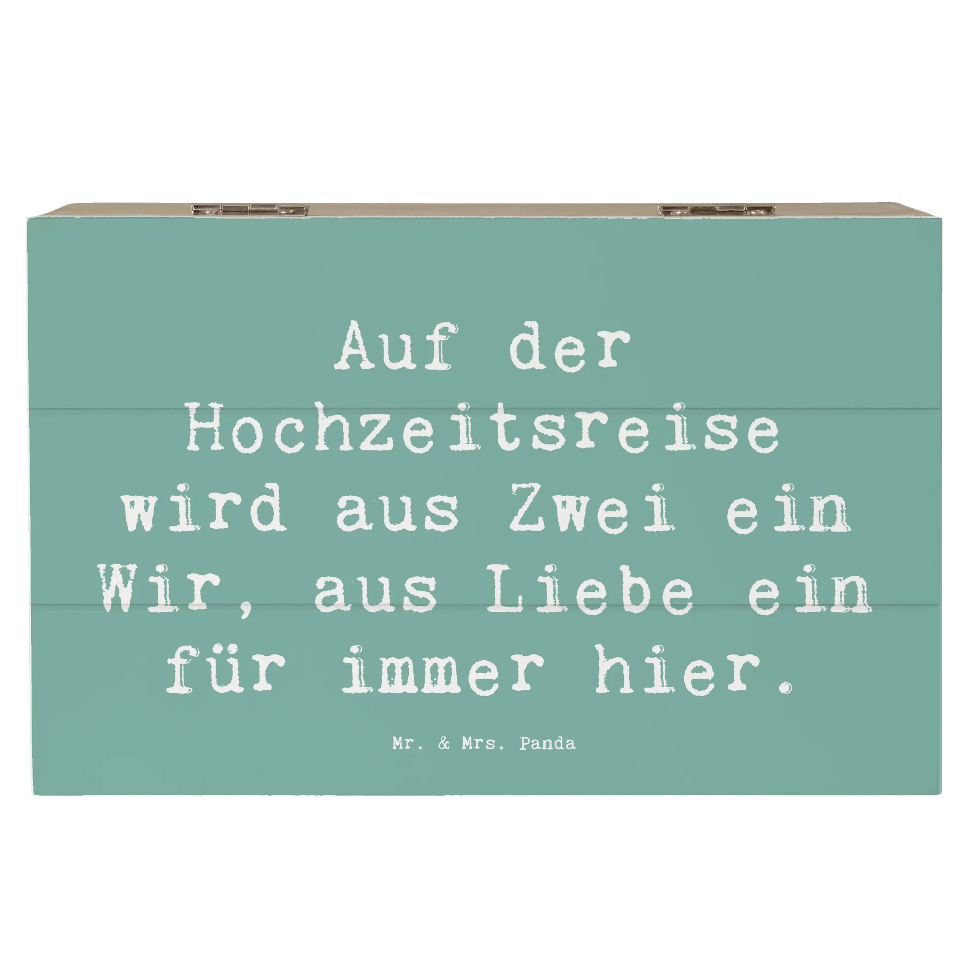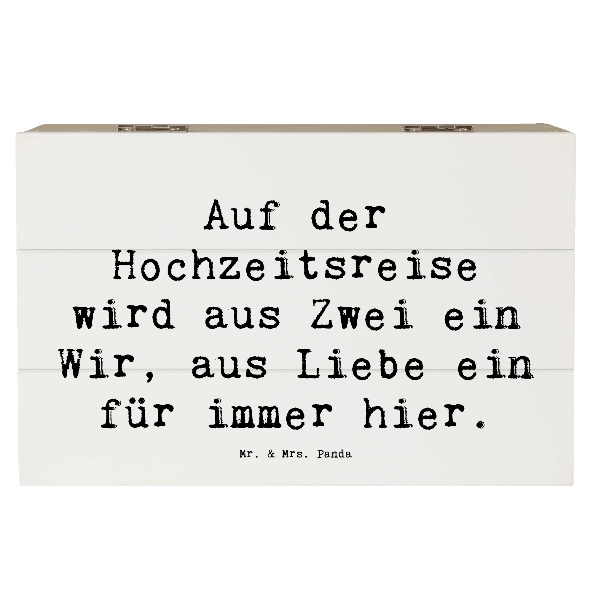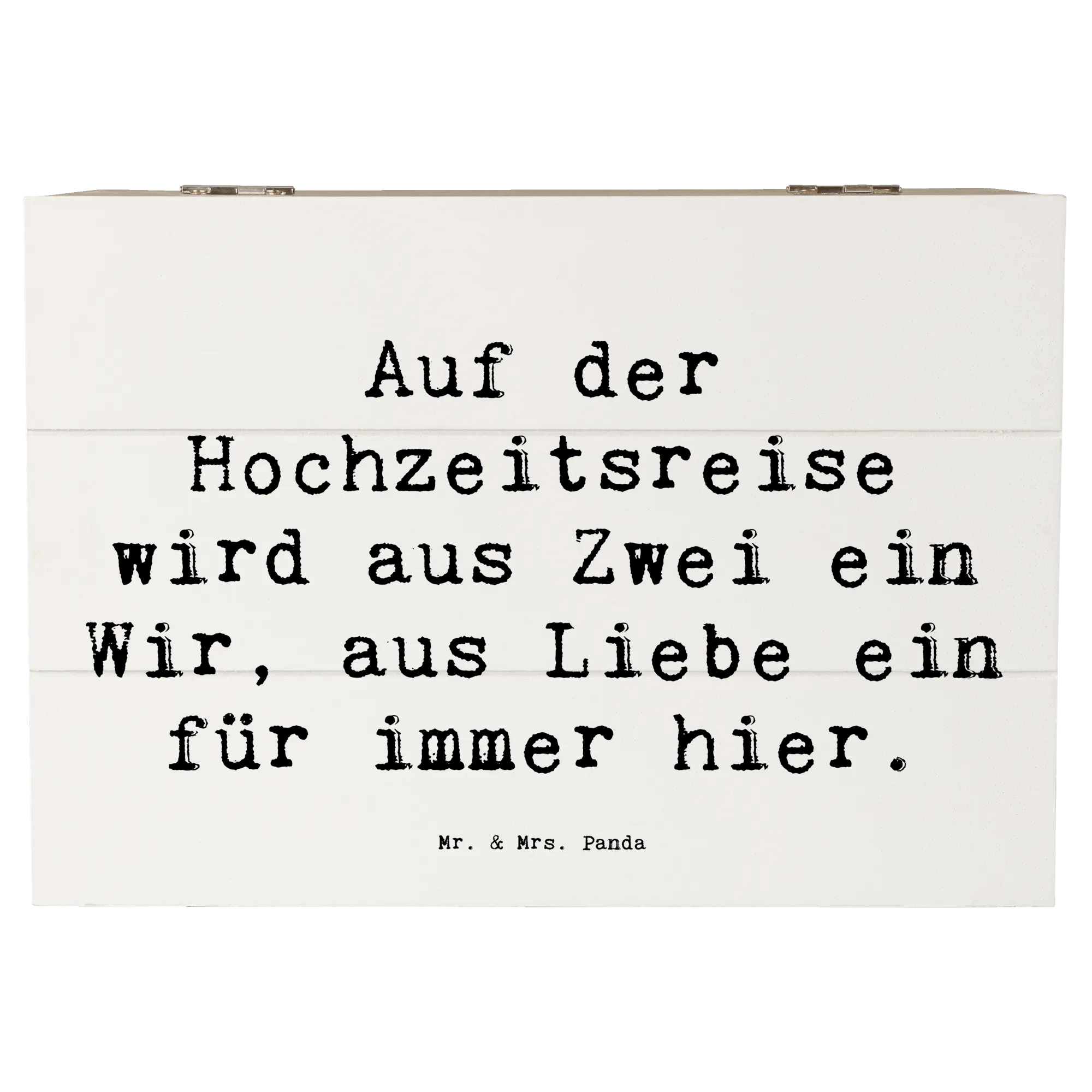 Entdecke die wunderschöne Holzkiste Hochzeitsreise von Mr. & Mrs. Panda – das perfekte Geschenk für frisch verheiratete Paare! Mit dem zauberhaften Spruch 'Auf der Hochzeitsreise wird aus Zwei ein Wir, aus Liebe ein für immer hier.' wird diese Erinnerungskiste zum liebevollen Aufbewahrungsort für all die schönen Momente, die die beiden während ihrer Reise sammeln.